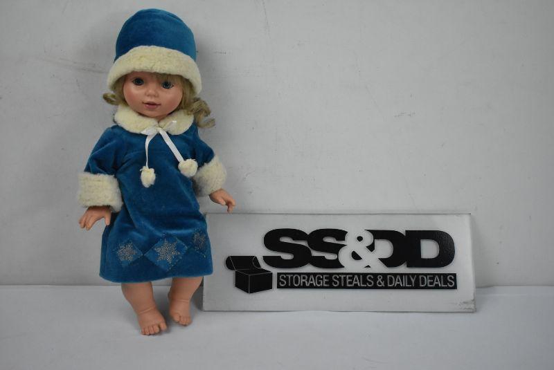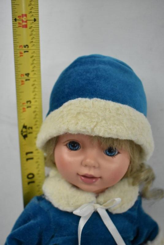 Baby So Beautiful Doll 1995 Blonde Curly Hair Blue Eyes, Turquoise Winter Outfit