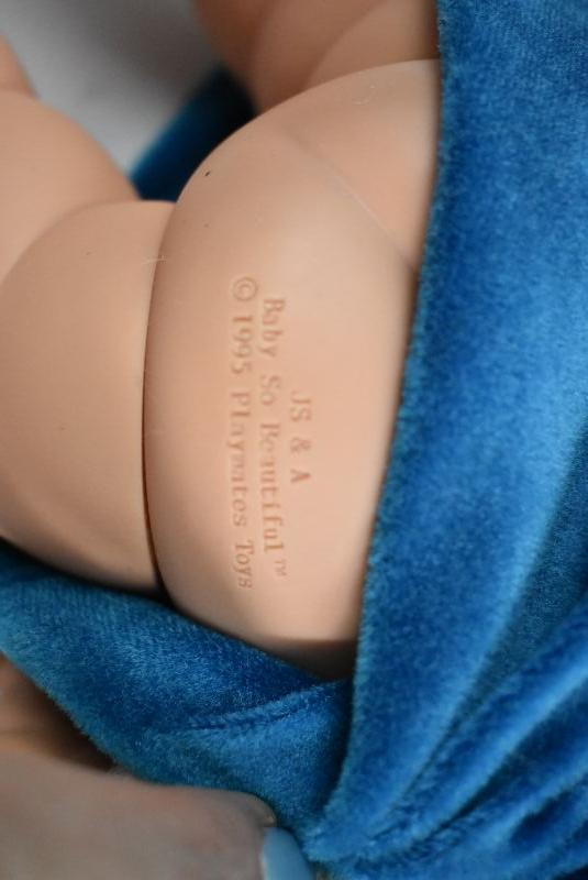 Baby So Beautiful Toy Doll from 1995. Blonde Curly Hair, Blue Eyes, Turquoise Winter Outfit