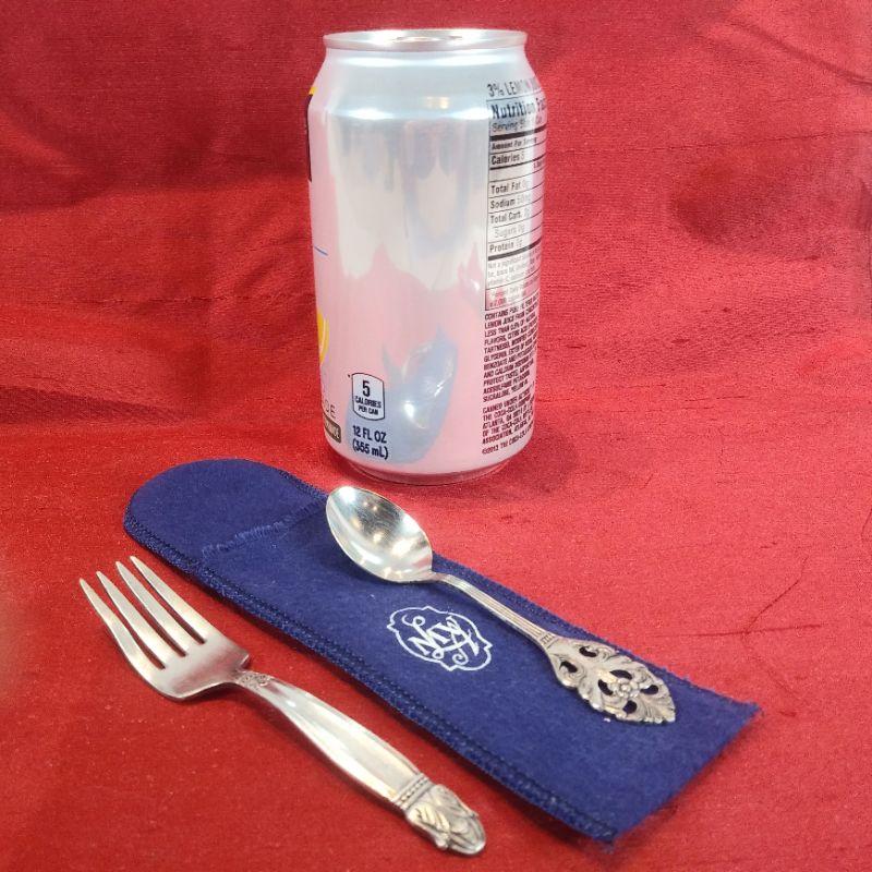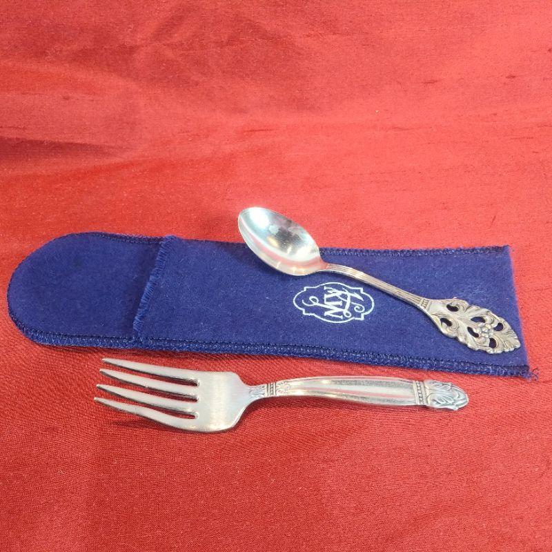 These two utensils were designed specifically for youthful use. They are silver plated and in very good shape - no teeth or bang marks, both appear unused. The spoon was made in Sweden by Holmes & Edward Company and comes with a nice blue keeper bag. The spoon is 4-inches long and the fork measures 4 1/2-inches long, . What a great gift for the new born in your circle.
