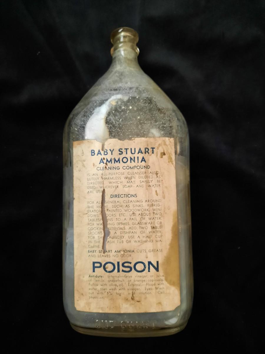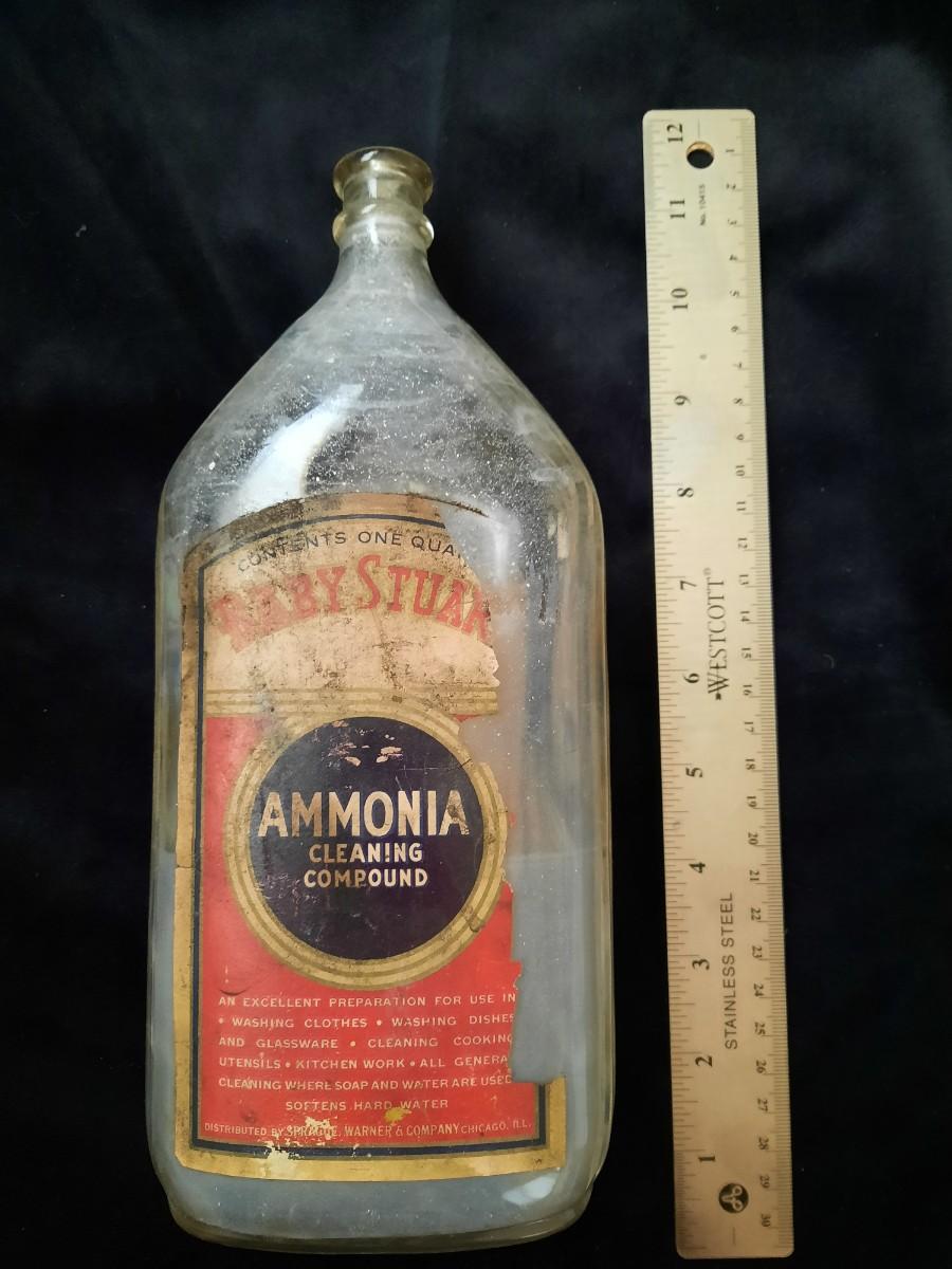 This is a very old empty One Quart bottle of "Baby Stuart Ammonia Cleaning Compound" distributed by Sprague, Warner & Company.