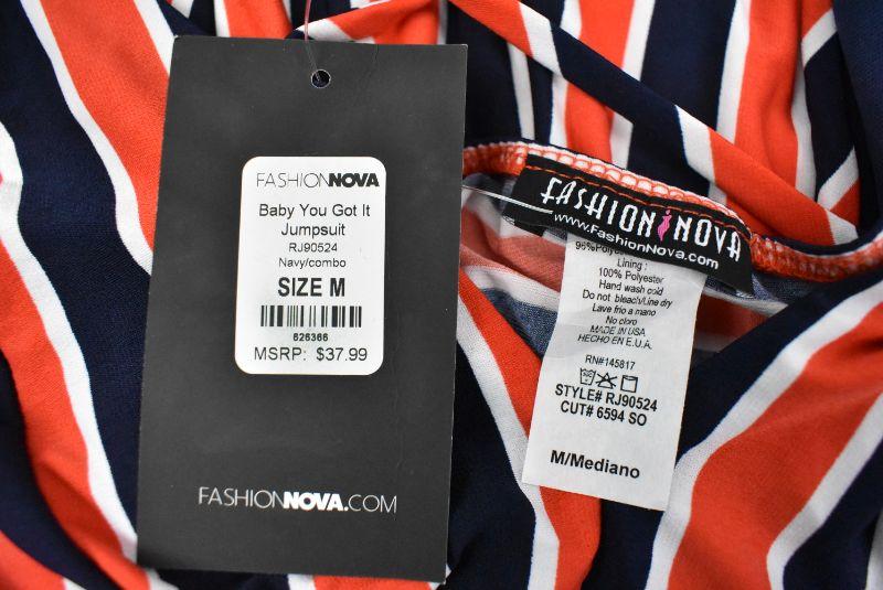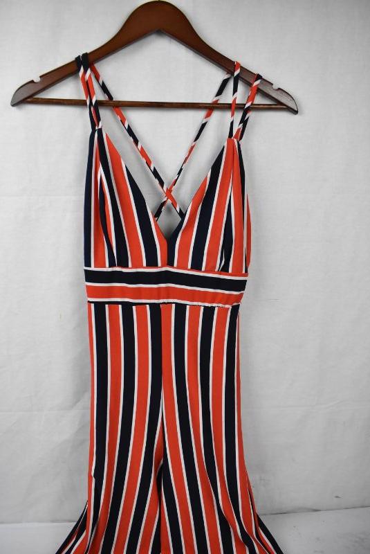 Baby You Got It Jumpsuit Jumper/Romper. Spaghetti Straps & Long Legs, Orange & Navy, Women's Size Medium by Fashion Nova - Retail $38 - New