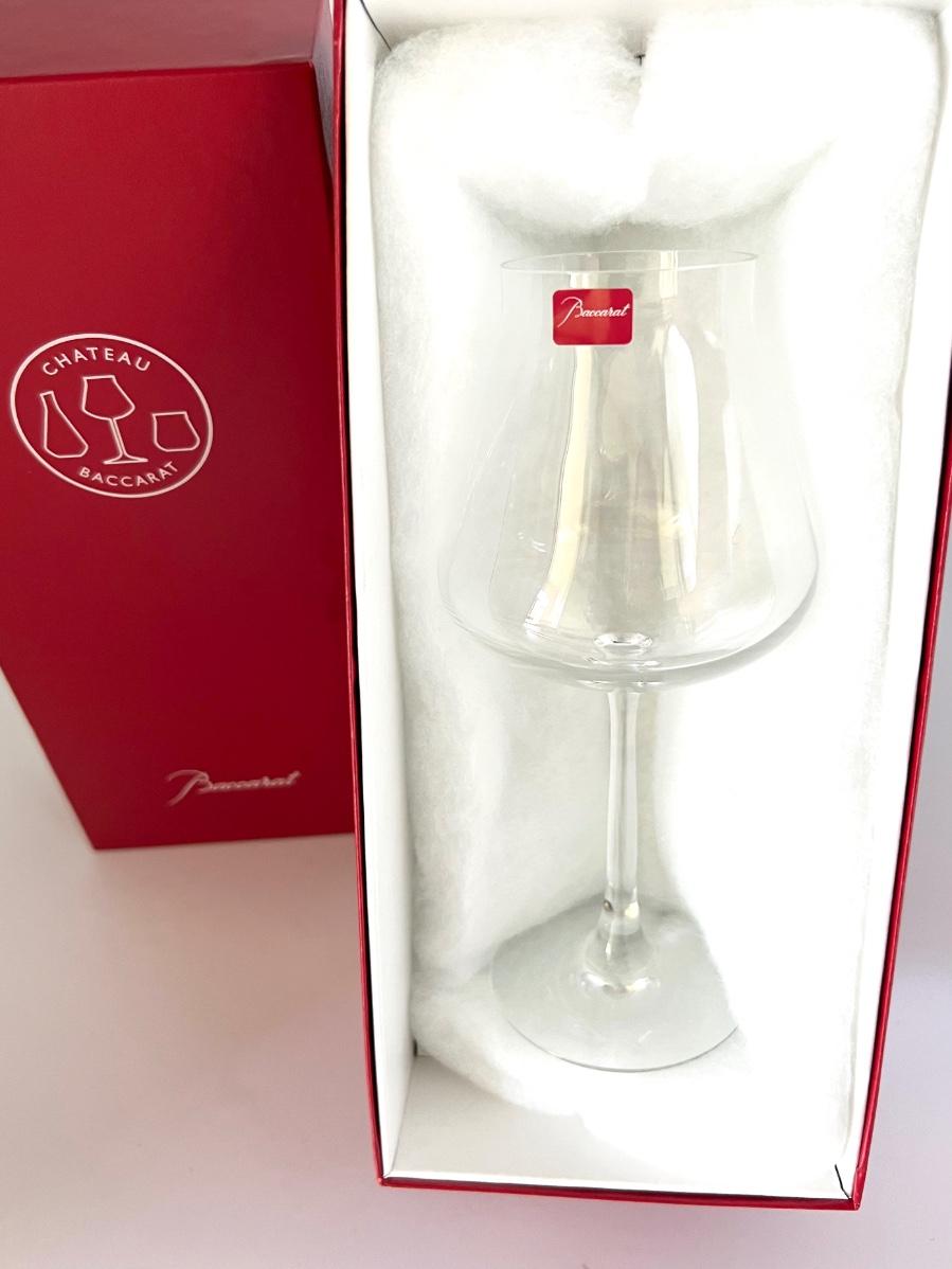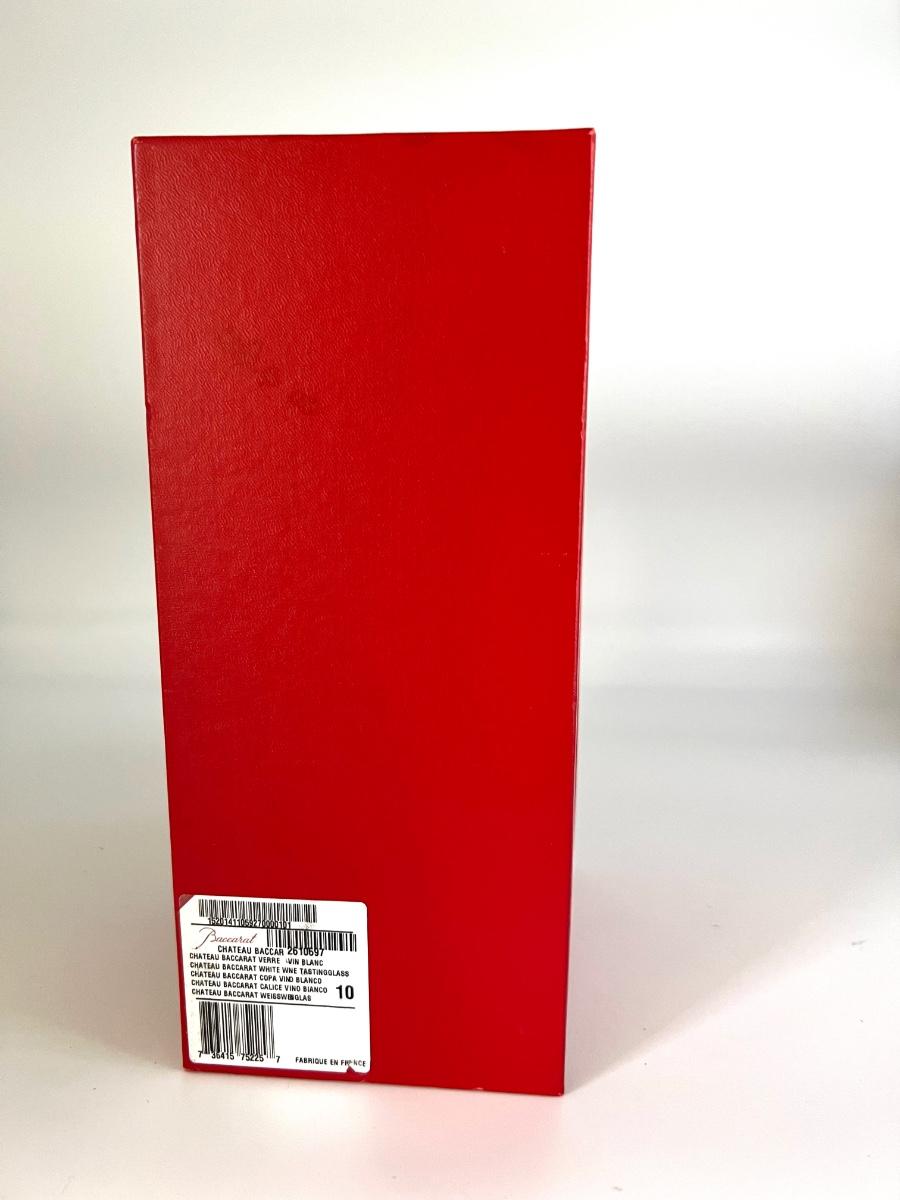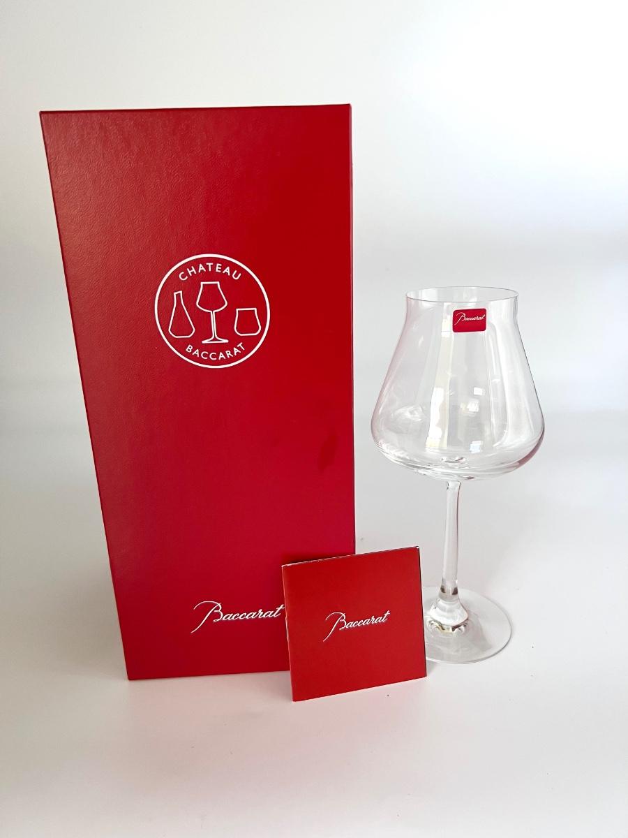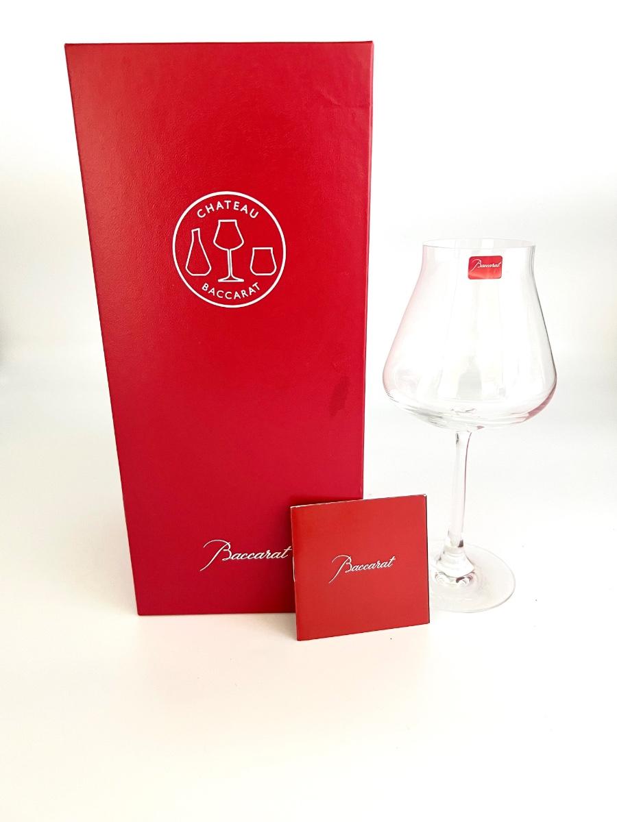 New Baccarat Chateau Wine Glass France with red box. Measures 8 inches tall.