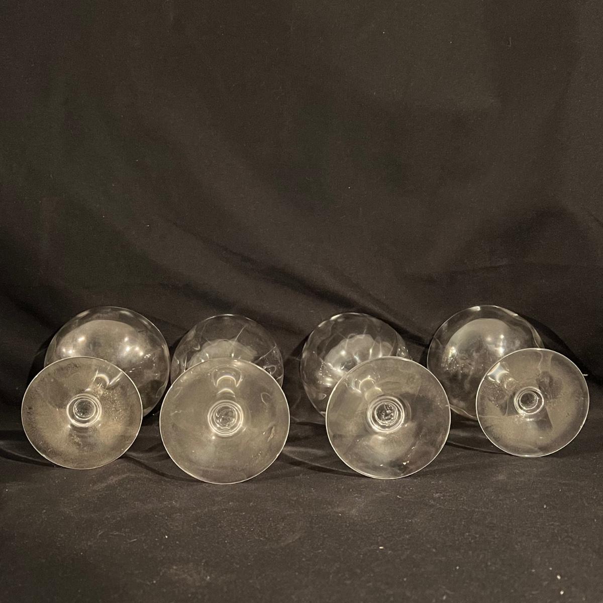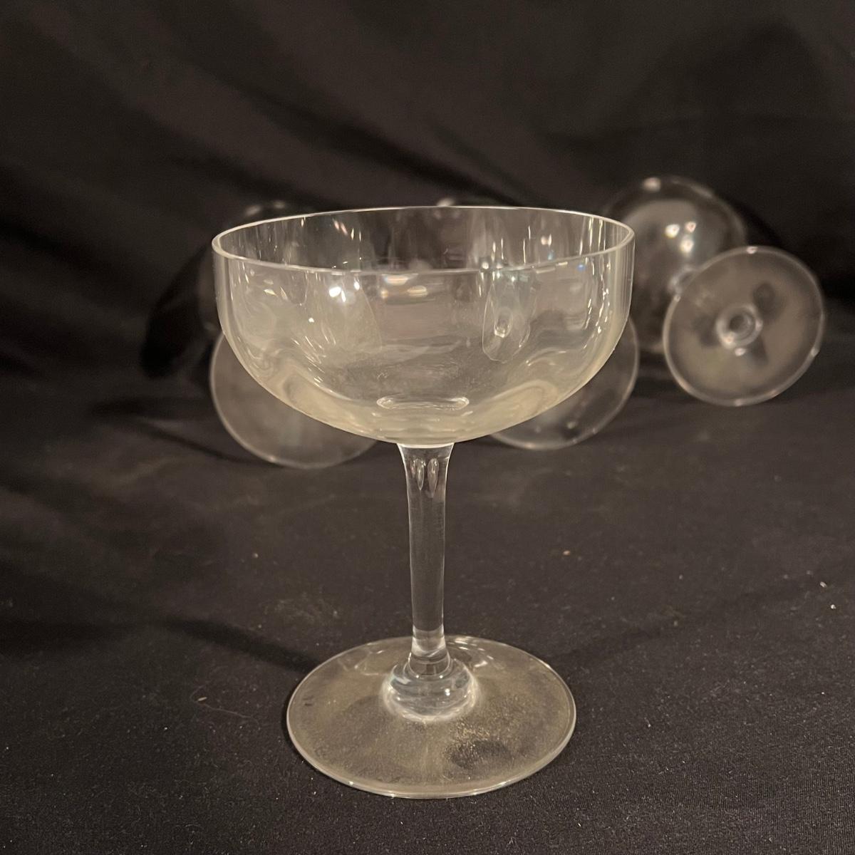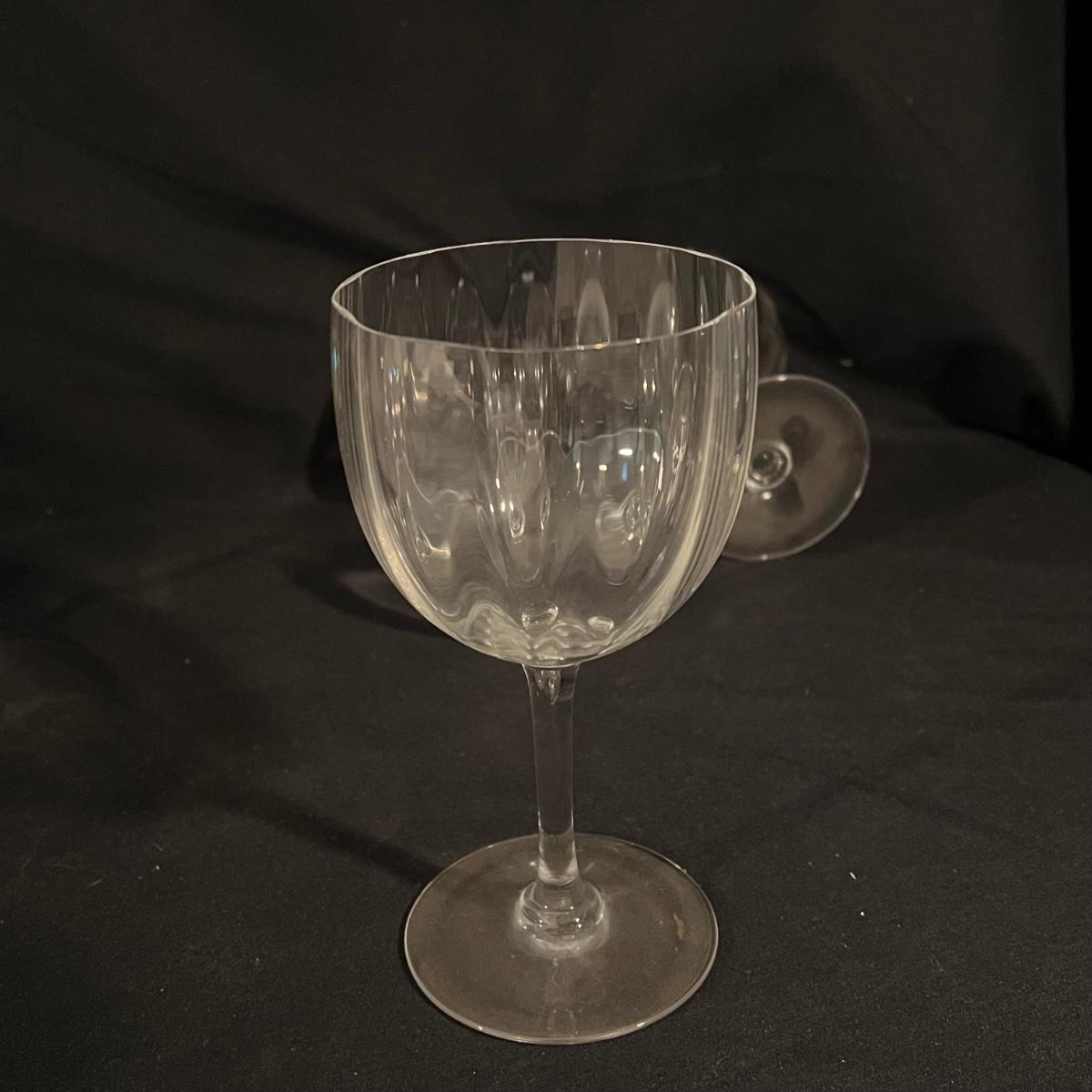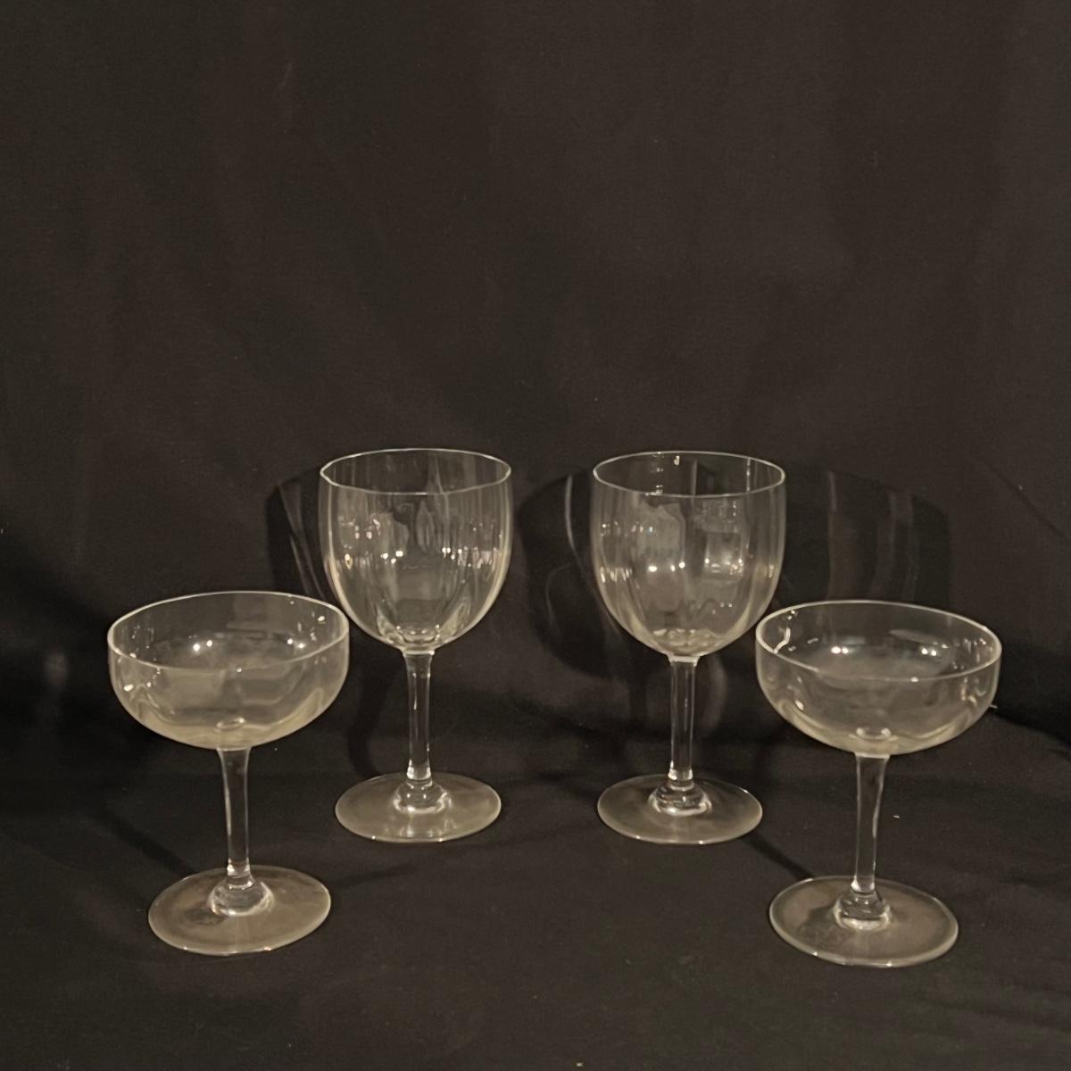 Included in this lot are two pairs of stemware, including the two wine glasses that appear to be Baccarat Crystal. The wine glasses measure 3.25”D x 6.25”H. The champagne coups measure 3.5”D x 5”H. Shipping available.