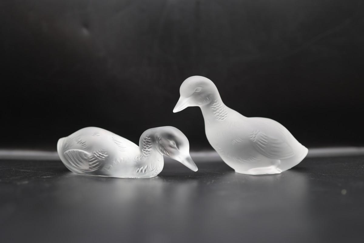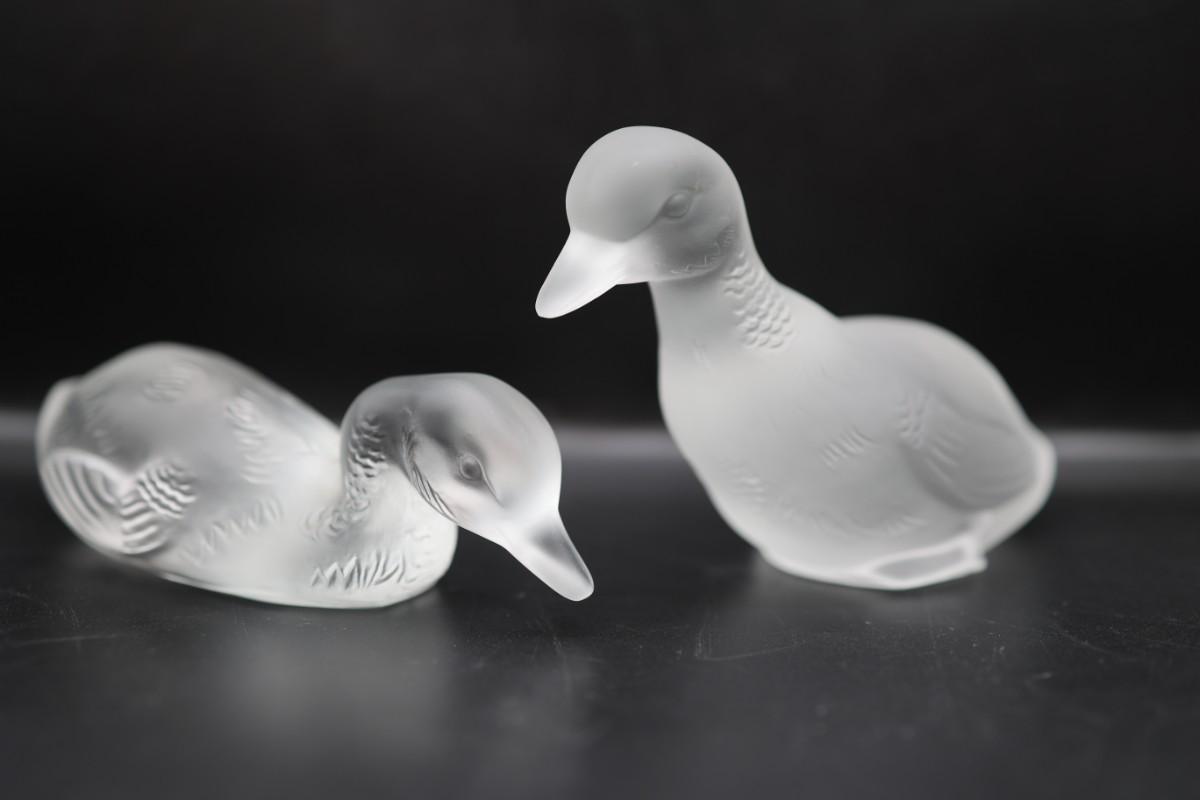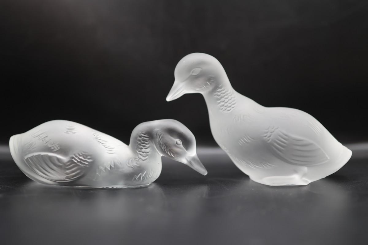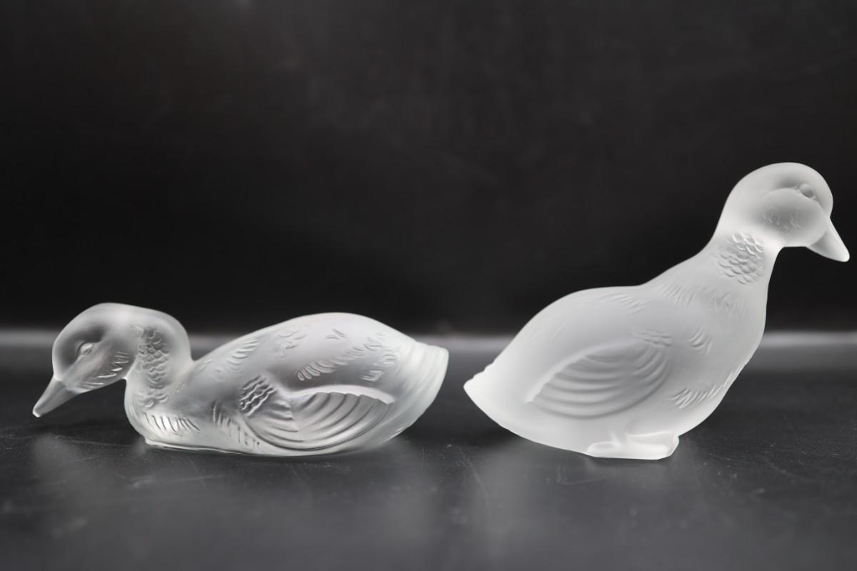BACCARAT Frosted Crystal Duck Figurines (2)