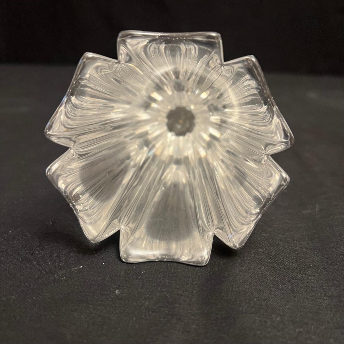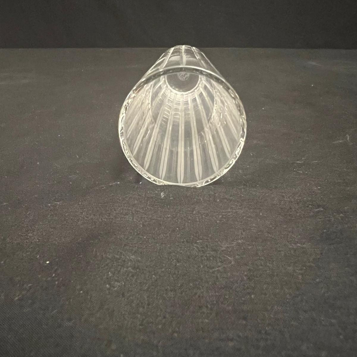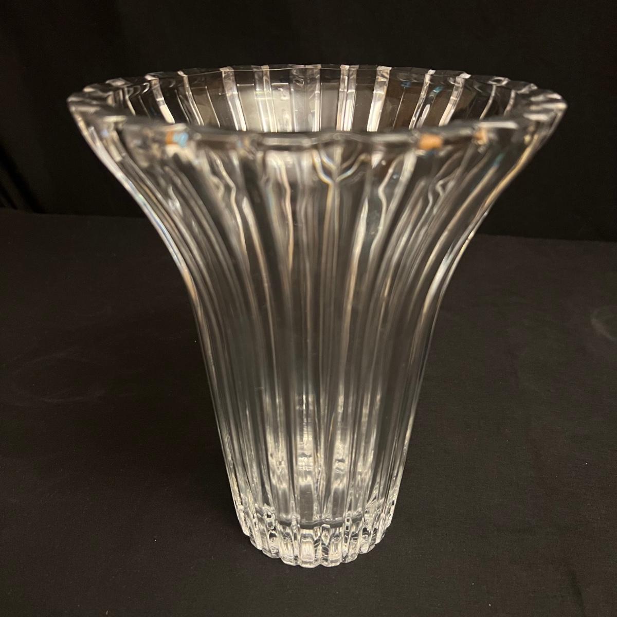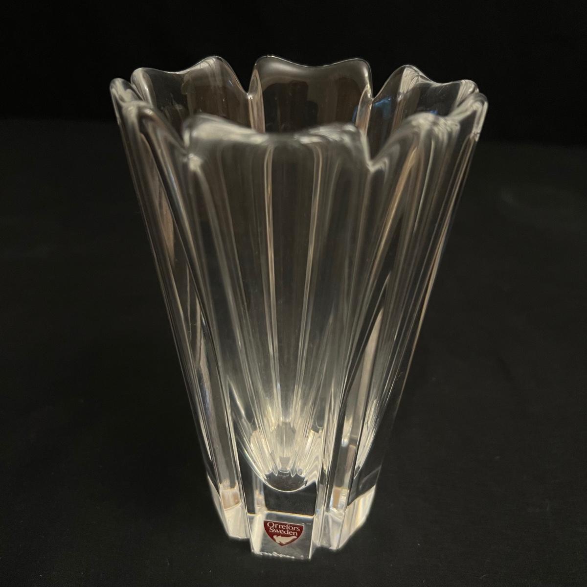 Three glass vases includes Baccarat and Orrefors. The largest vase is the unmarked one which measures 6.5”D x 8”H.