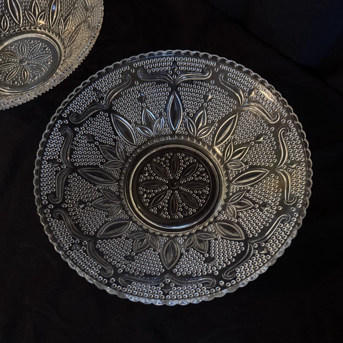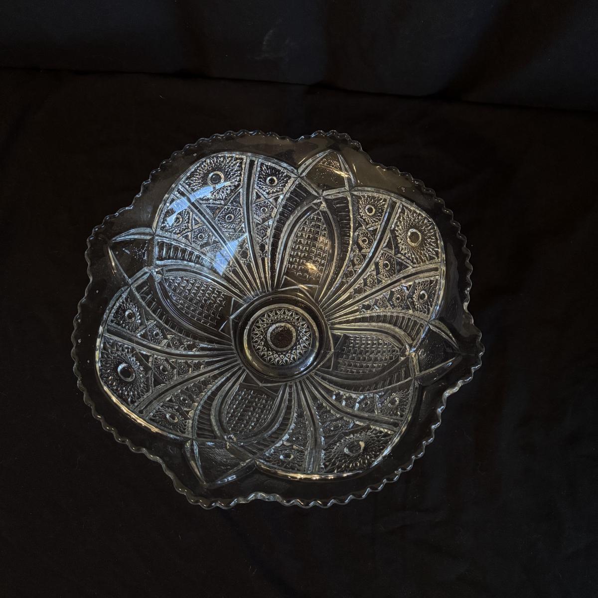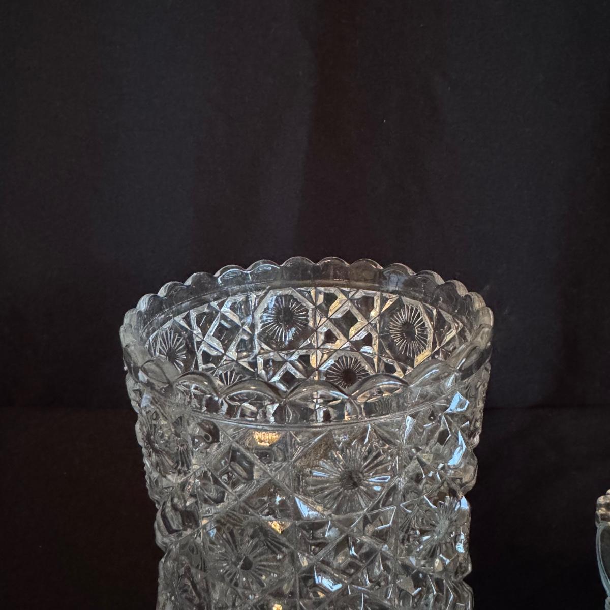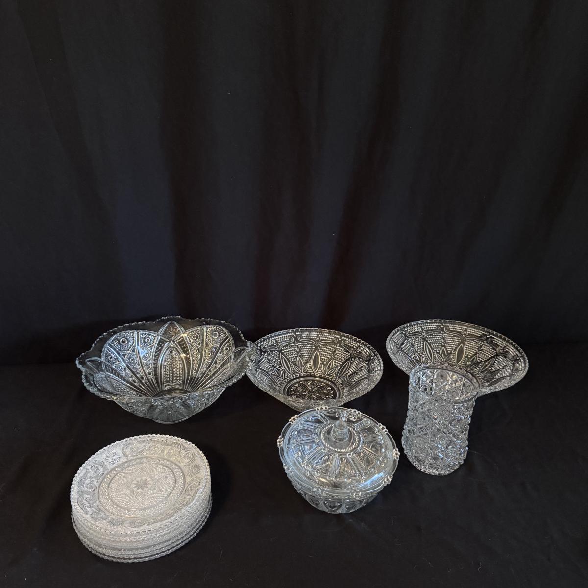This lot of glass includes eight Baccarat plates, three glass bowls, one vase, and one bowl with a removable lid. Please see pictures for etching and details on each piece. Note that we cannot confirm the plates are authentic as there are no markings. The largest bowl measures 12”D x 5”H. Shipping available.
