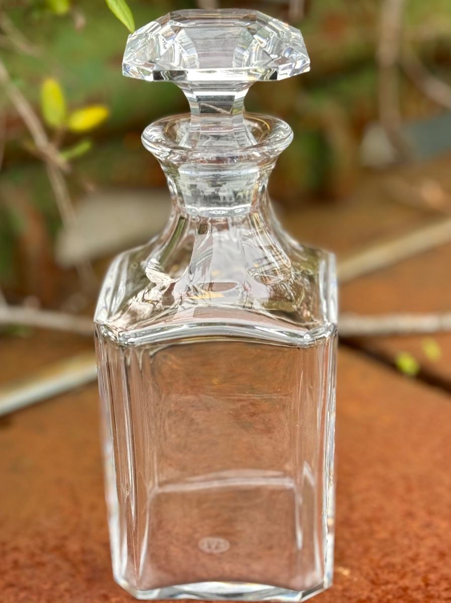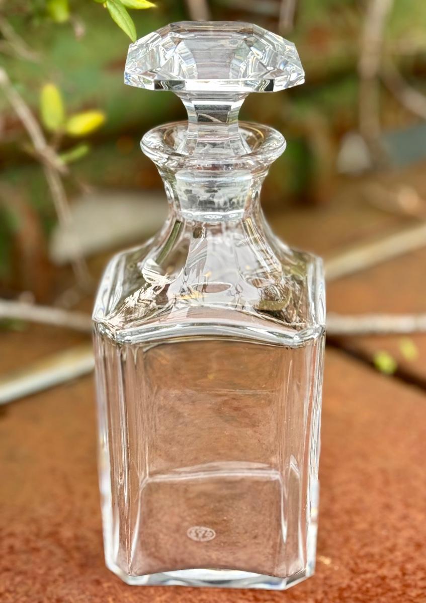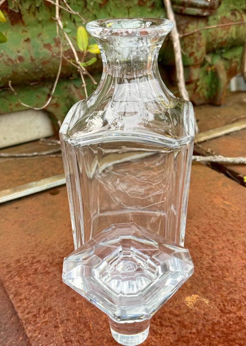 Beautiful Clear Crystal Baccarat Decanter with diamond cut beveled stopper. Made in France.