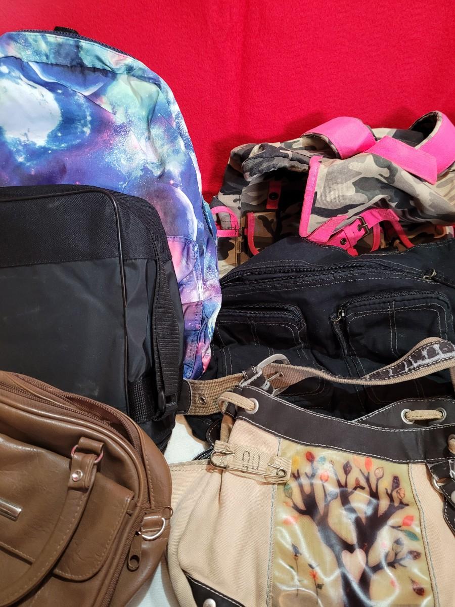 3 purses and 3 backpacks.