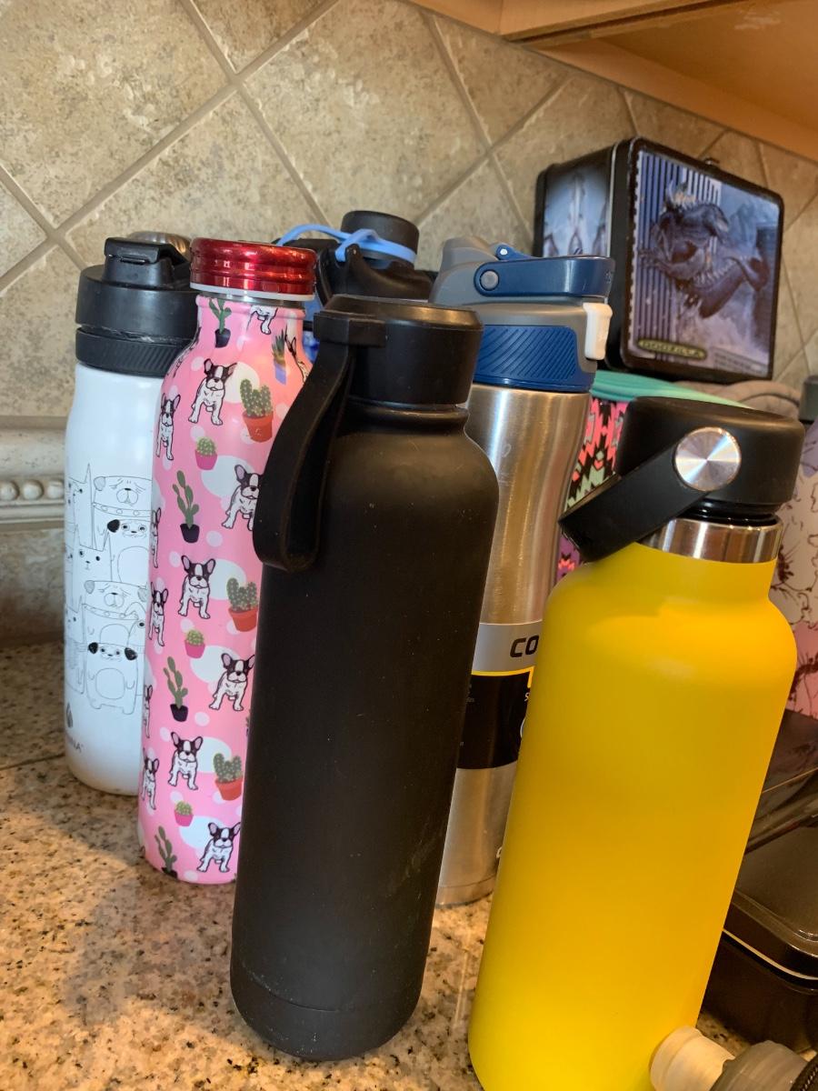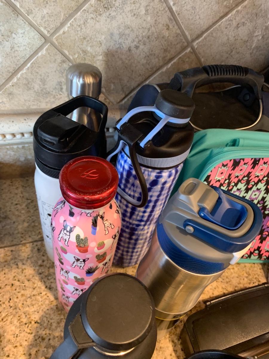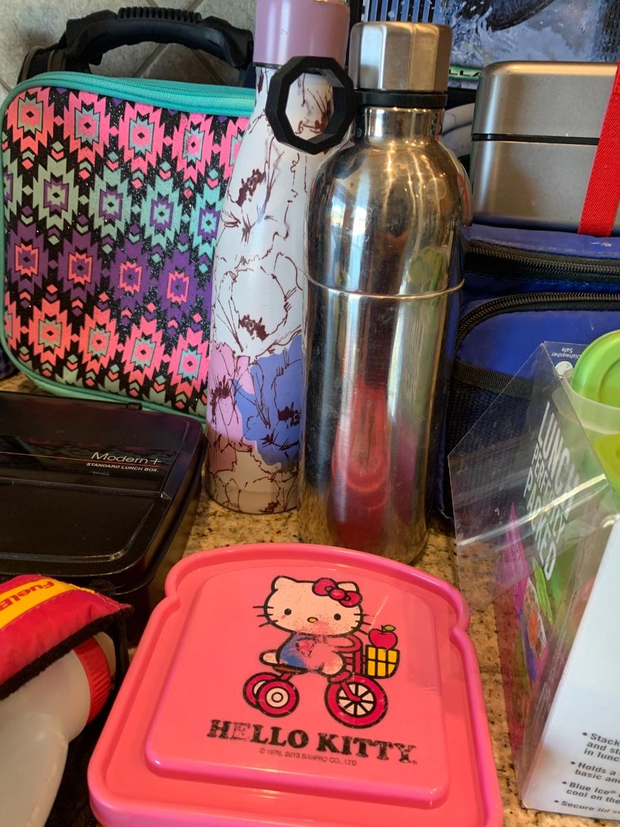 Lot includes lunchboxes in good to great condition and numerous water bottles in good condition.