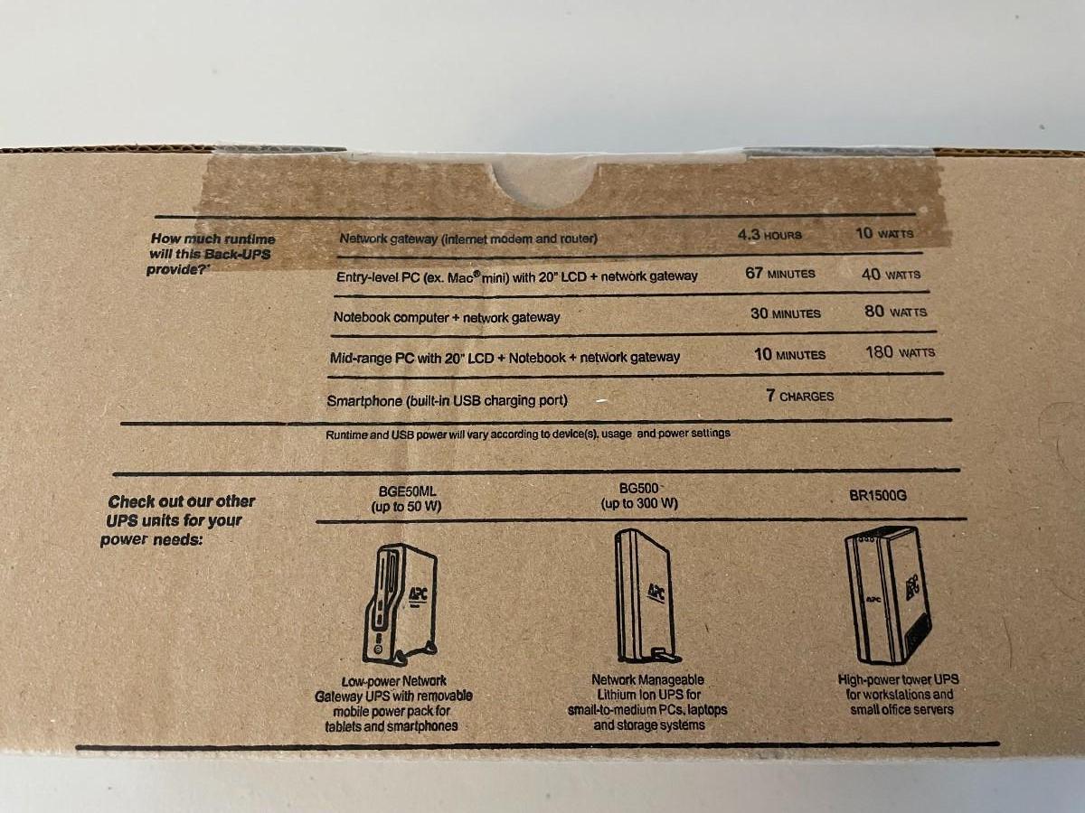 600 VA / 330 WATTS. 67 MINUTES RUNTIME FOR PC LOADS
