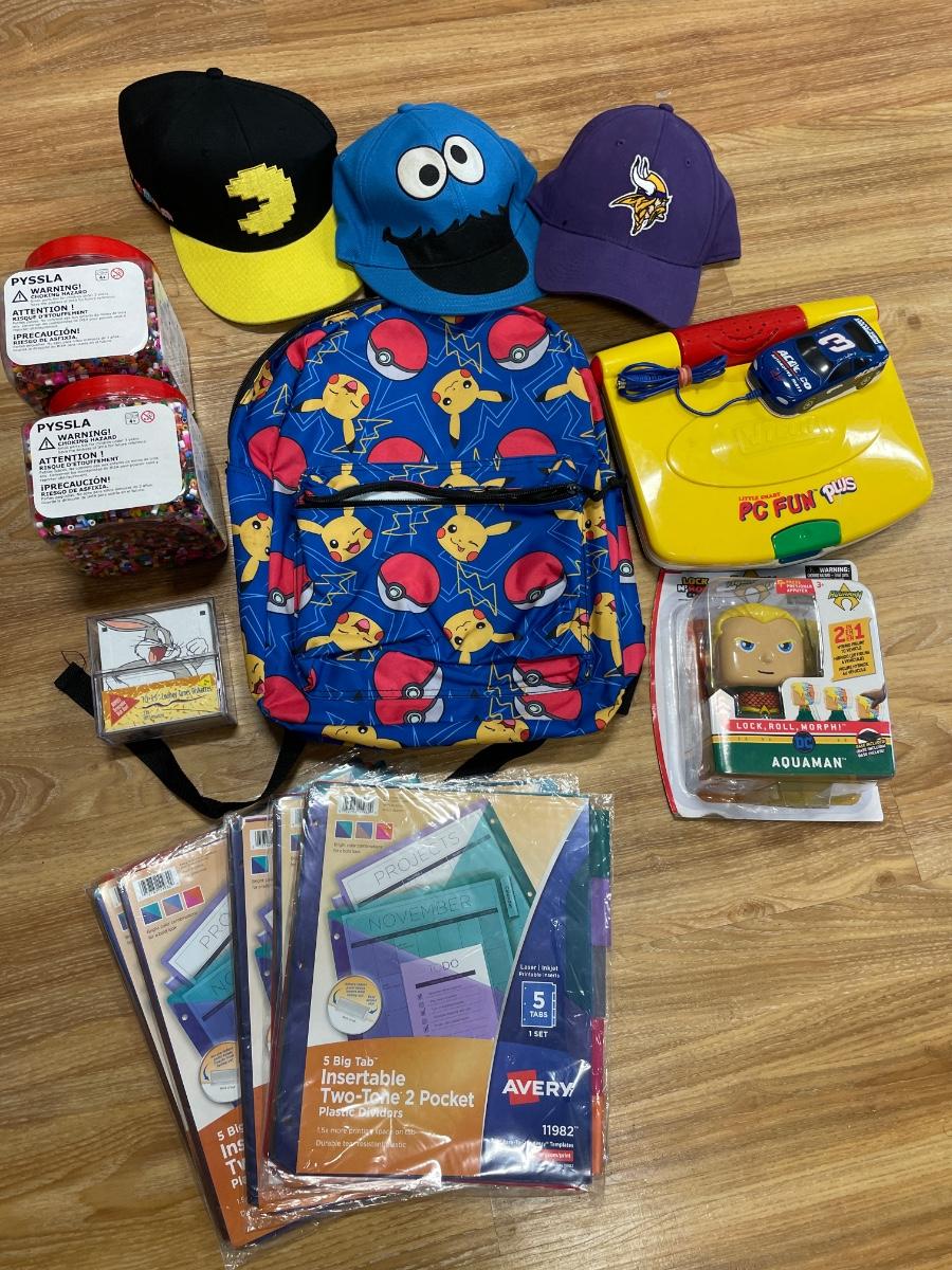 Backpack, hard, toys and crafting items