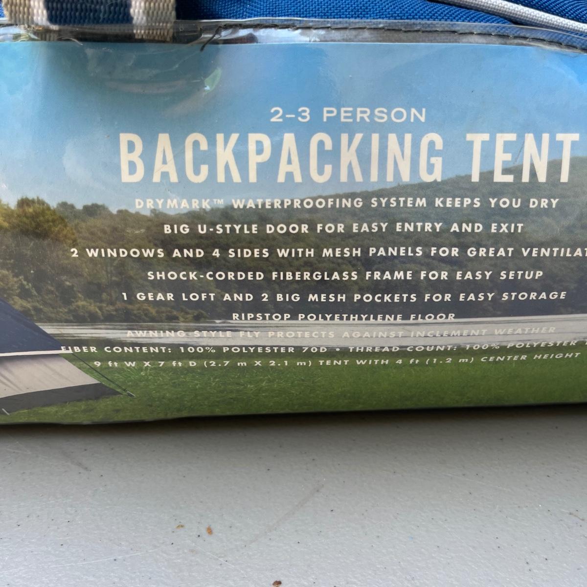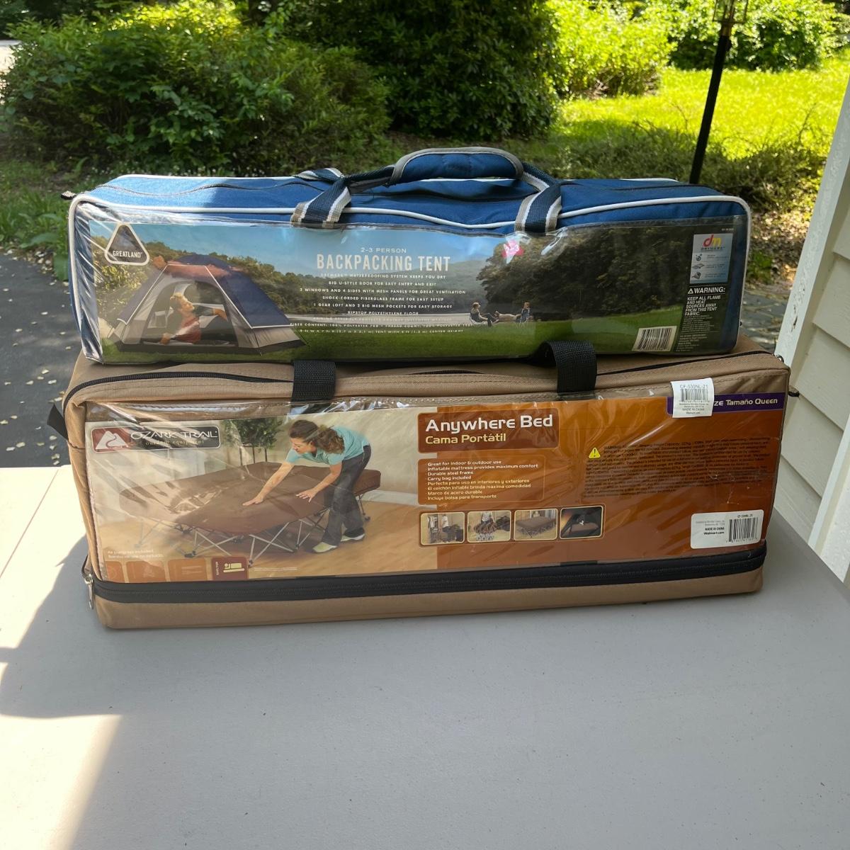 Greatland two to three person backpacking tent in original packaging plus an Anywhere Bed great for indoor or outdoor use. See images. Local pick up only.