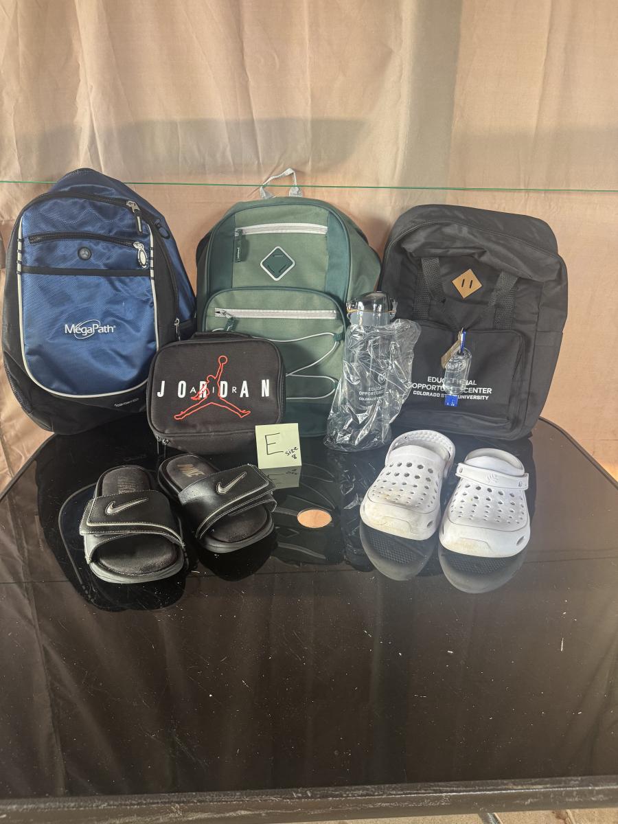 BACKPACKS, WATER BOTTLE, CROCS, NIKE FLIP FLOPS & AIR JORDAN BAG