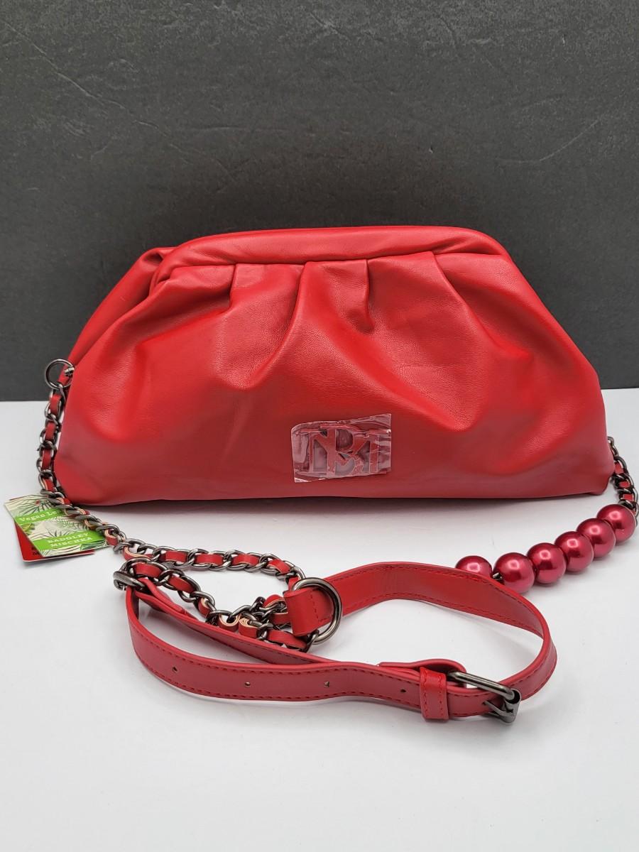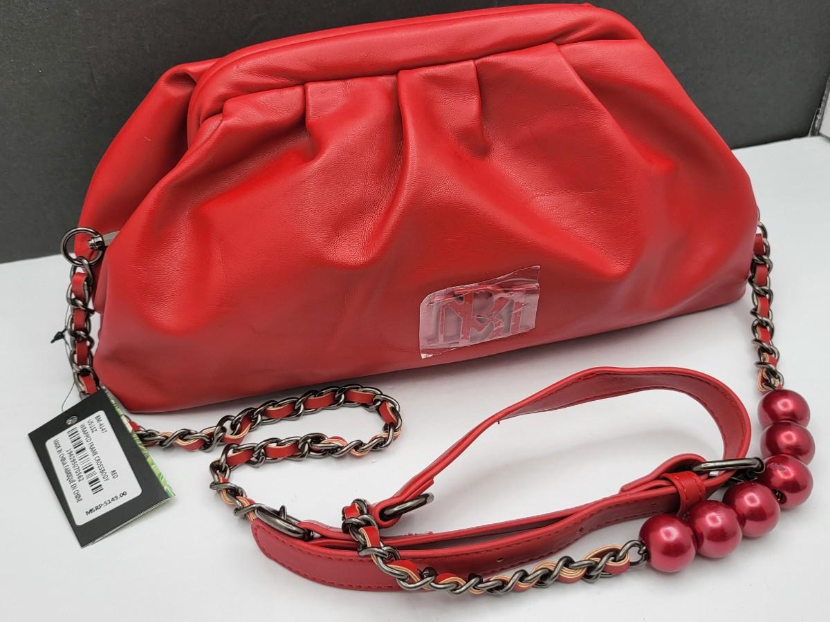 Badgley Mischka Red Vegan-Leather Puffy Handbag