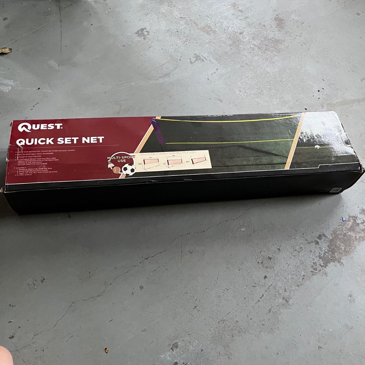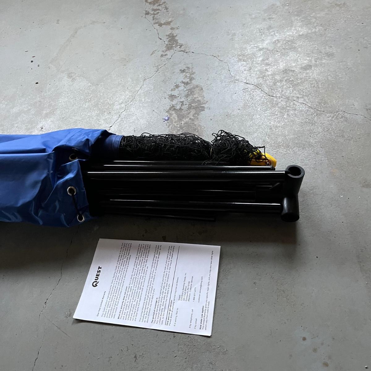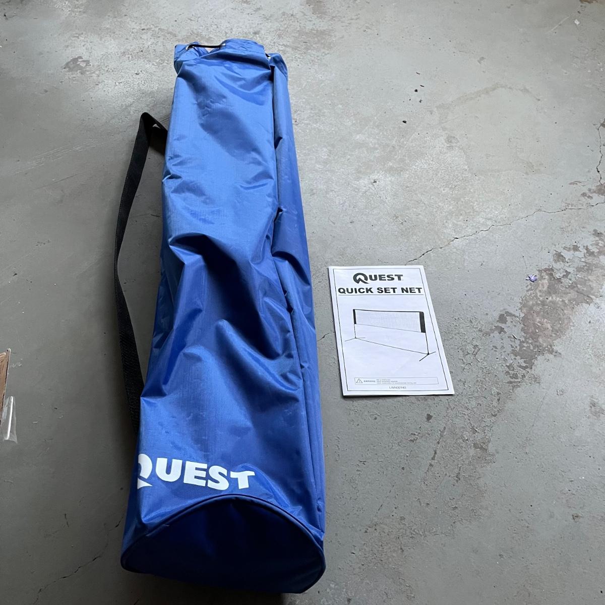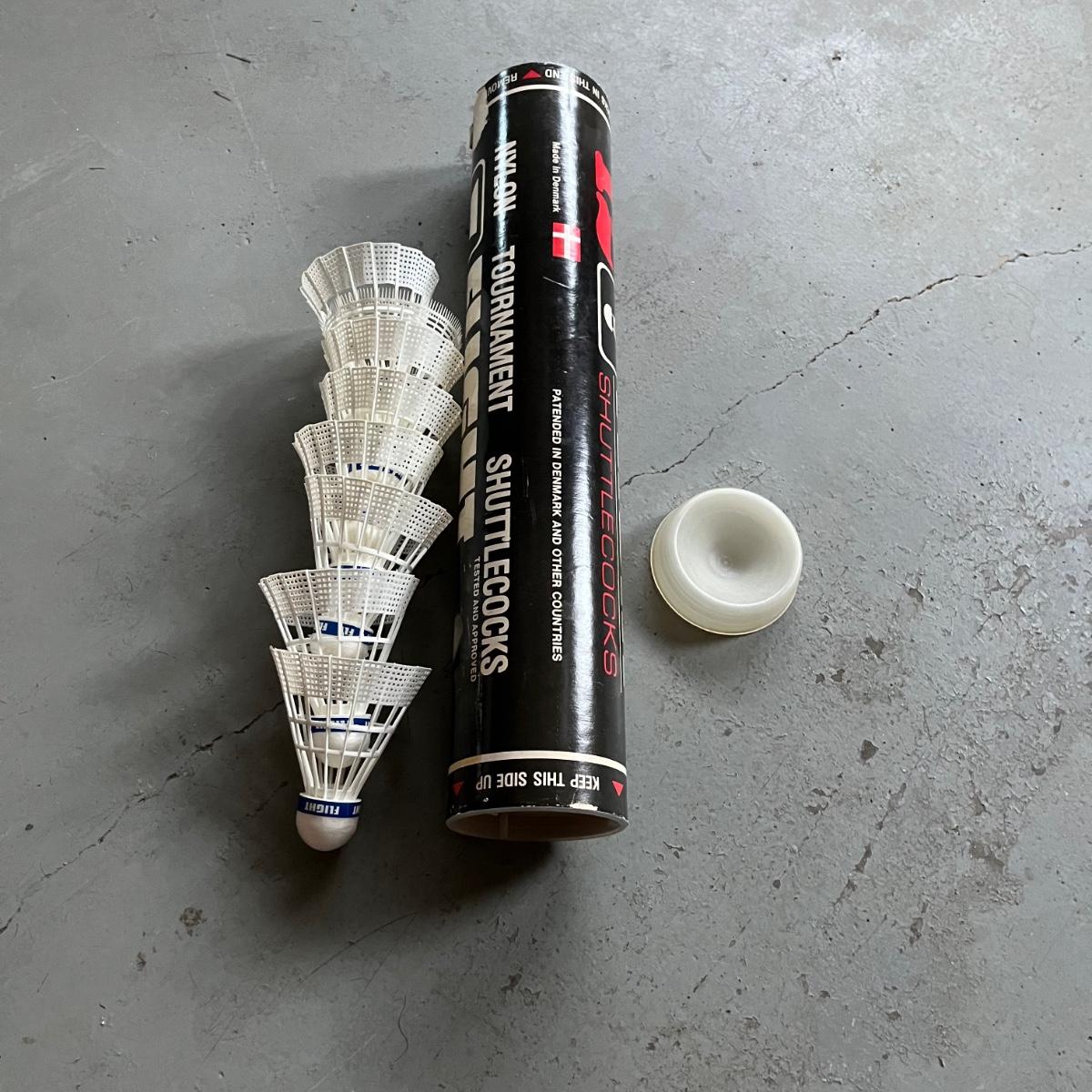 Lot includes two Relum Gold Cup wooden rackets, Yunex metal racket, Quest quick set net, Regent net and shuttlecocks.