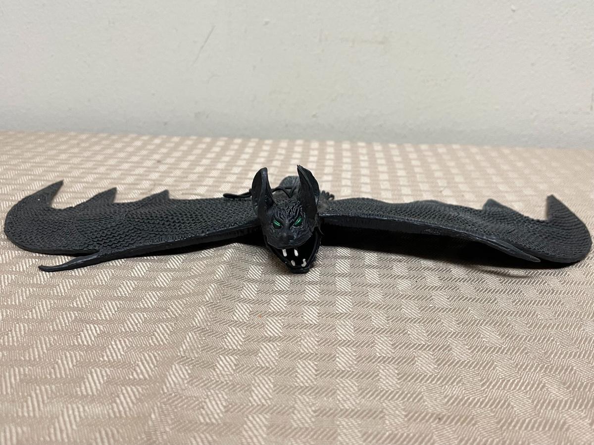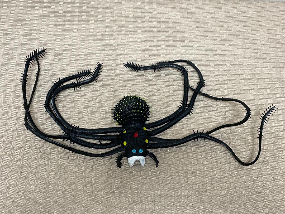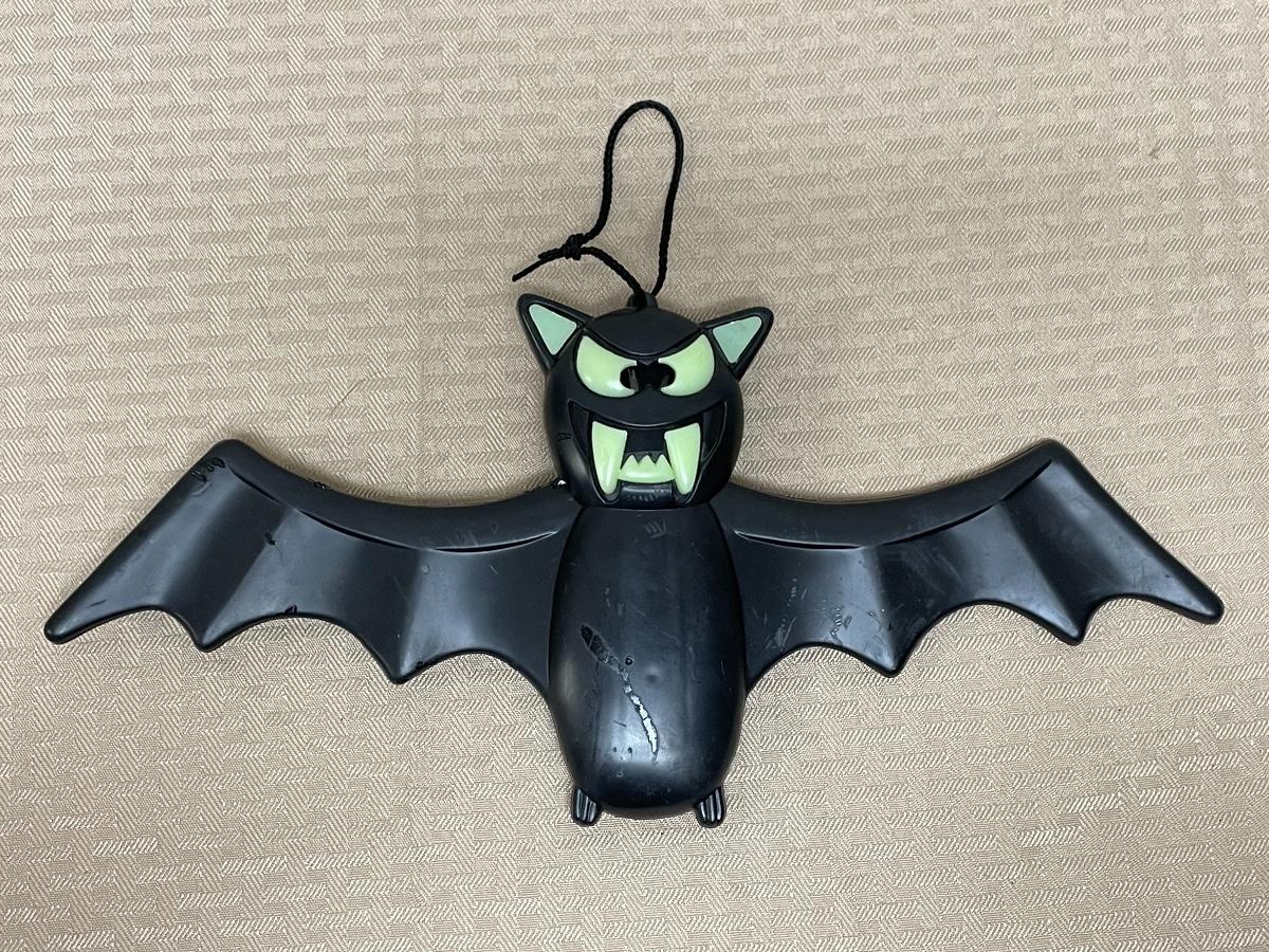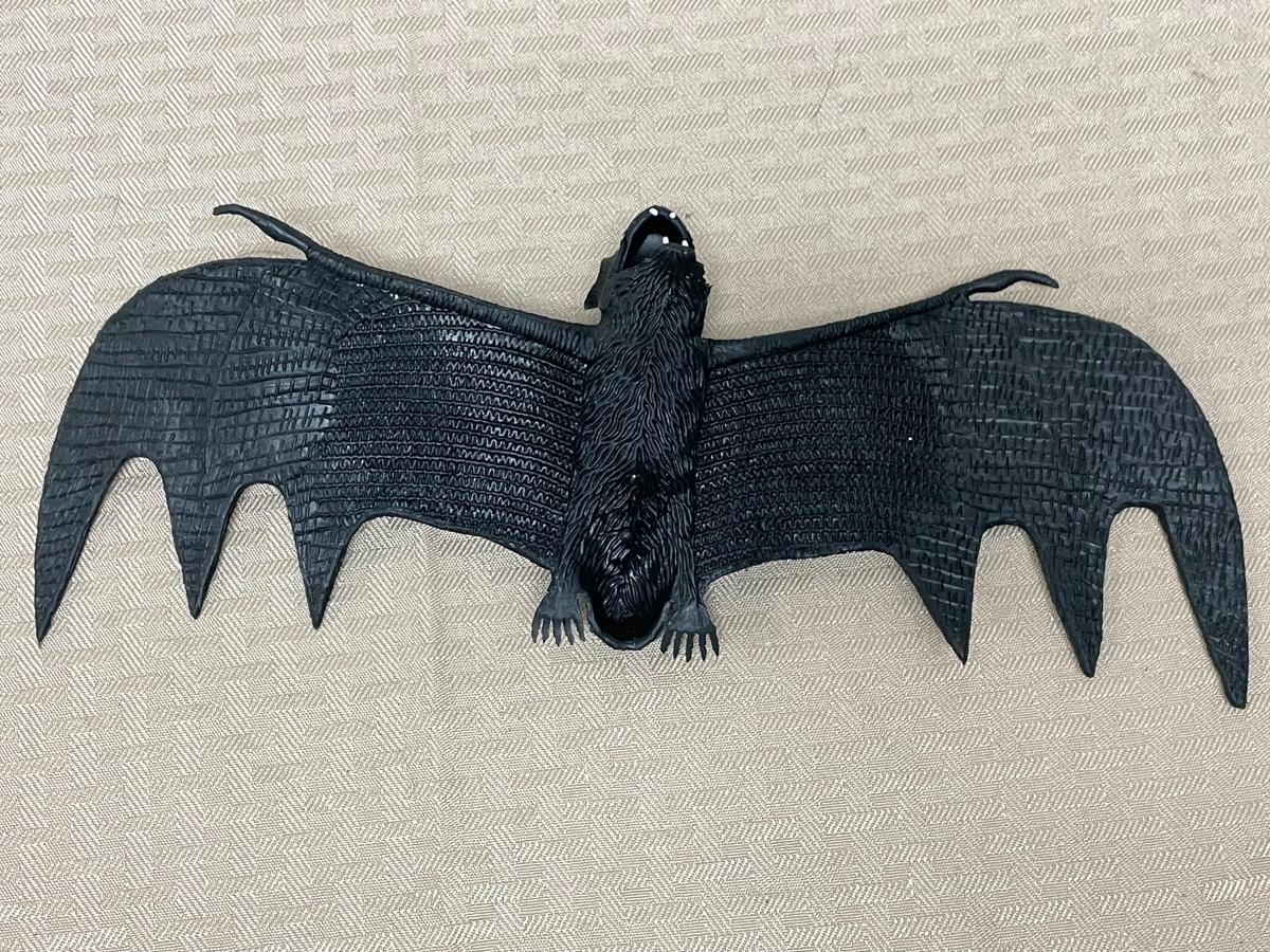 Item comes with one rubber bat, one plastic bat, one paper spider decoration, and one rubber spider. Items are all in great condition and have no significant damages.