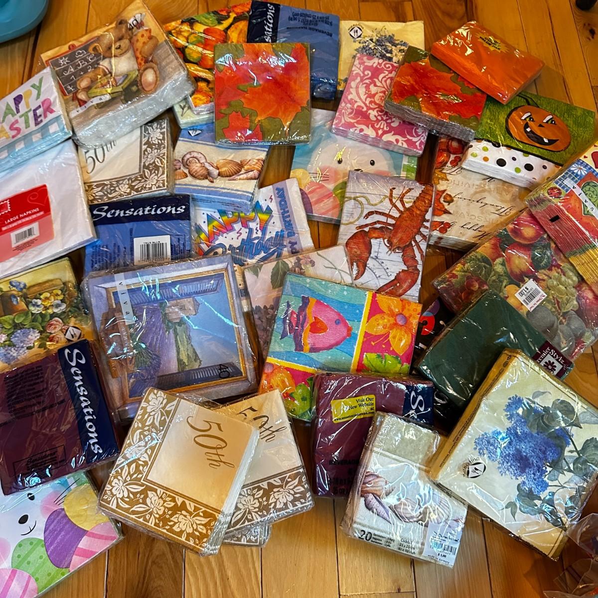 Bag of 35 Unopened Napkin Packages, Seasonal, Birthday, Etc.