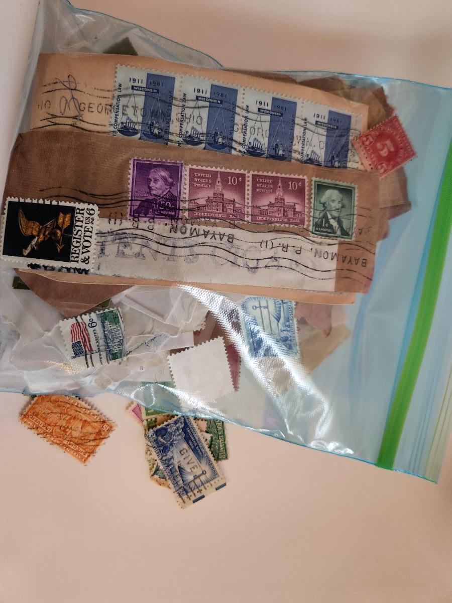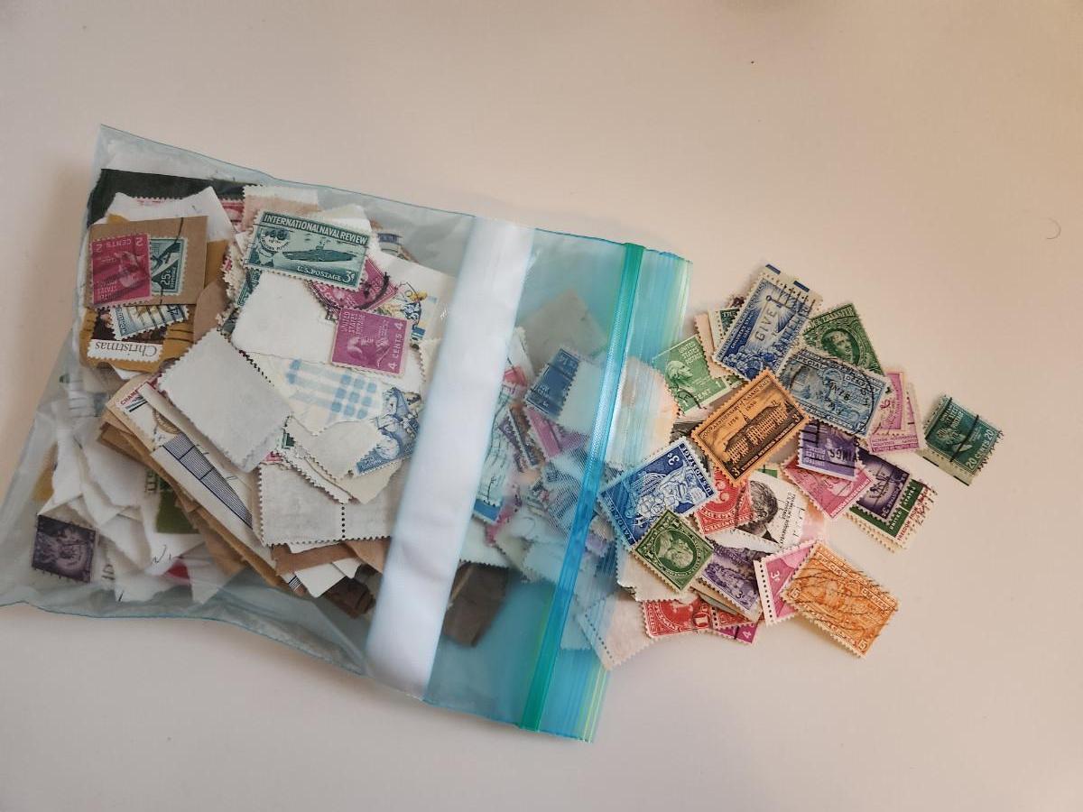 This auction lot is for a Bag of Cancelled American Stamps. From the estate of an old collector. All types of stamps mostly American issued - old, older and newish, too. They are what they are and ready for your collection, art work or scrapbook projects.