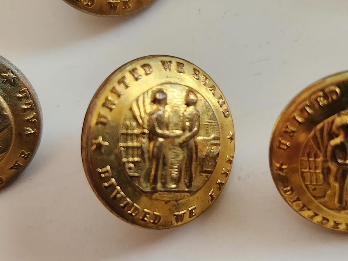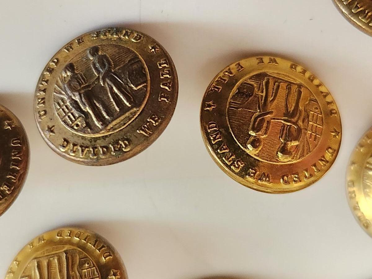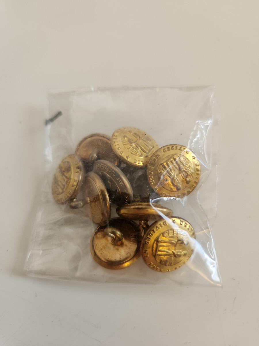 This lot is for a Bag of Kentucky Buttons. This group of 10 buttons all show the state seal and are of a gold-toned metal. Great for many purposes.
