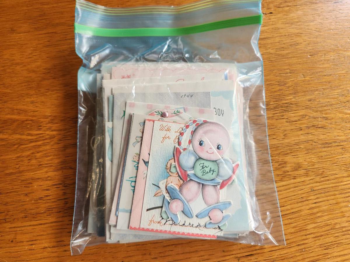 This auction lot is for a Bag of Vintage Baby Gifting Cards. Many gifts came to this little baby and each with a fun card. These will be great for crafting or most any collection or purpose.