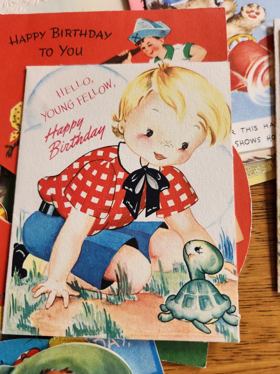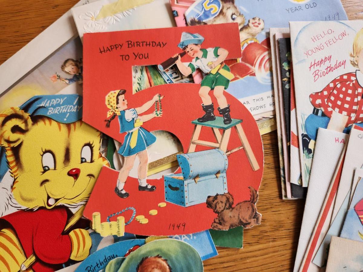 This auction lot is for a Bag of Vintage Birthday Cards. Follow this little fellow each year and enjoy the vintage greeting cards sent his way. Great for crafting, keeping or sharing for many purposes.
