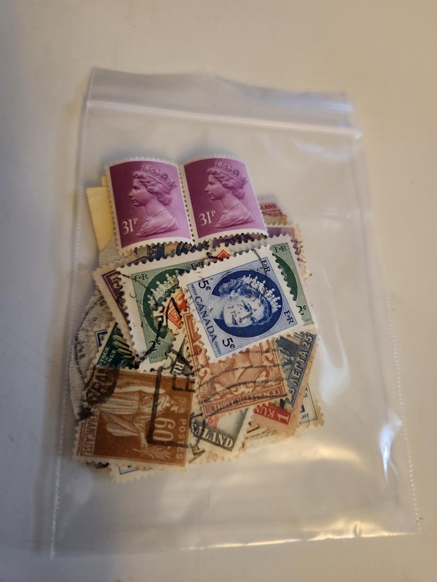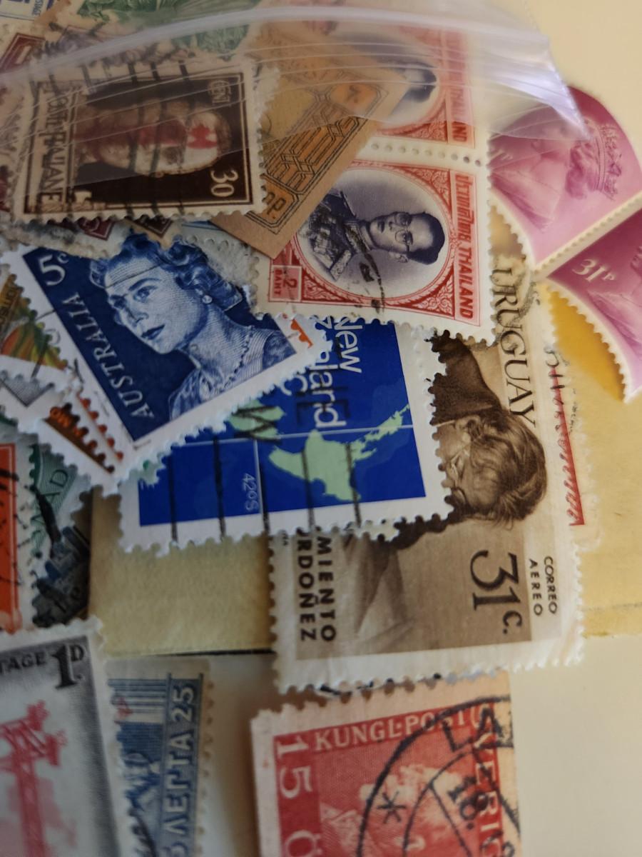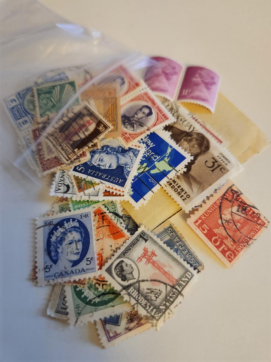 This lot is for a Bag of Vintage World Stamps, These stamps are mostly used and have cancellation marks Stamps are from England, Thailand, Italy, Rodesia, the Maldives and other. Nice starter group for most any interested collector - would make some great creative artwork.