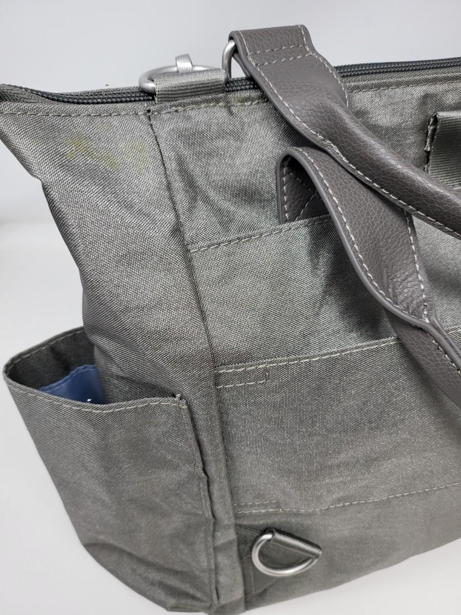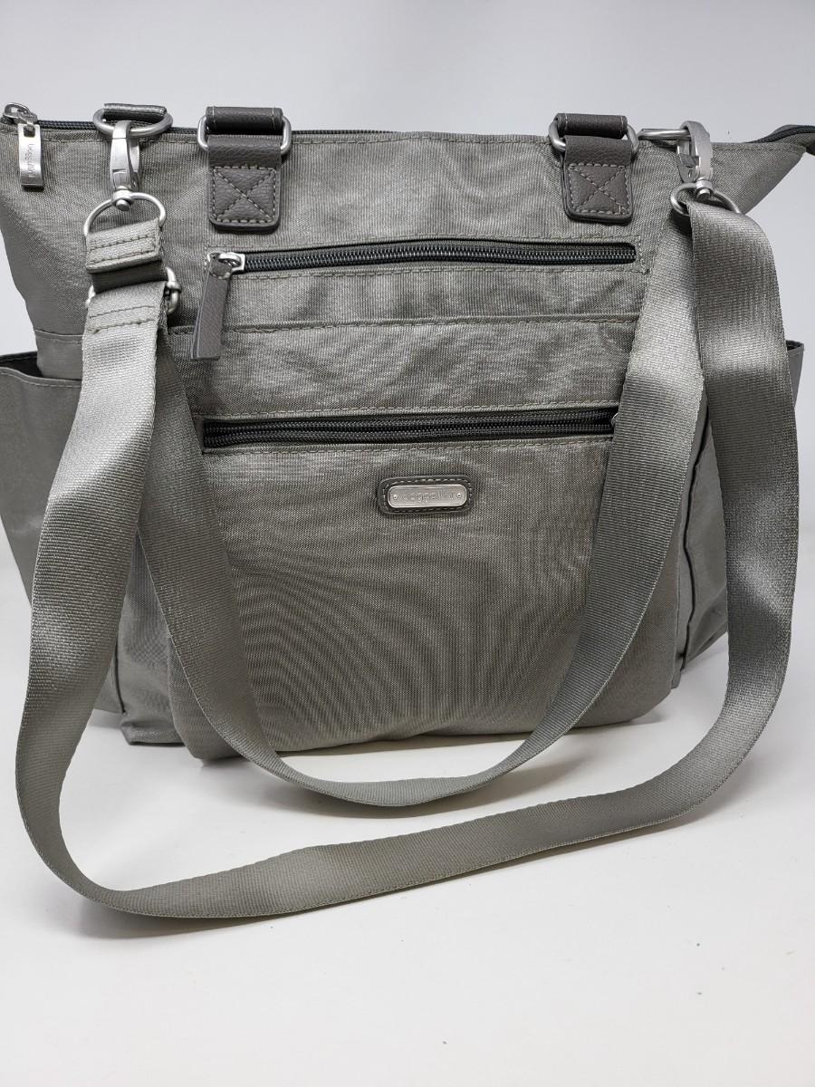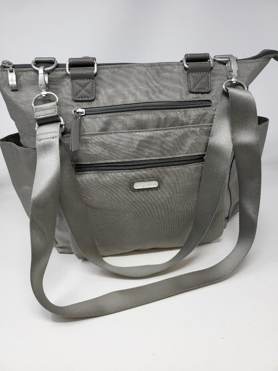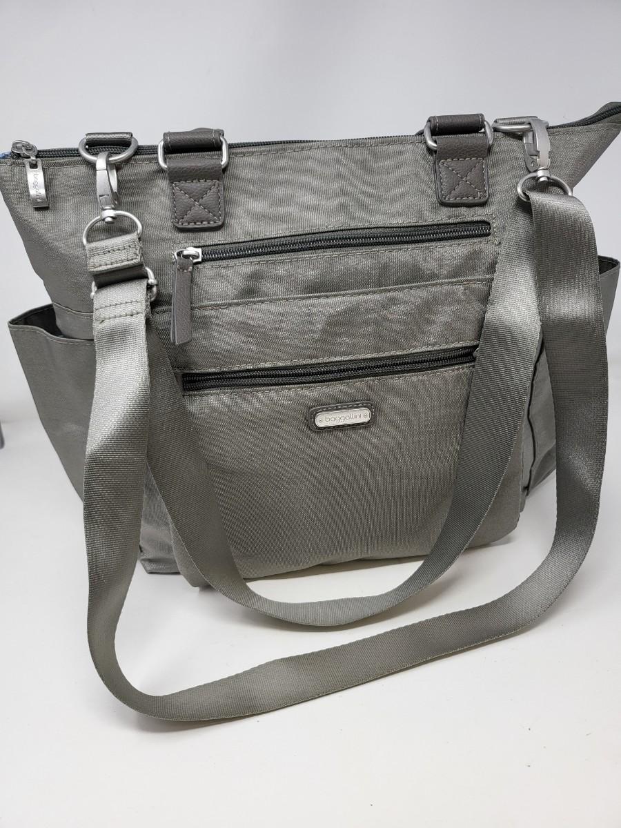 Black Baggallini organizer travel tote. Measures 14" long x 12" tall x 4" deep. Double hand straps & long shoulder strap.