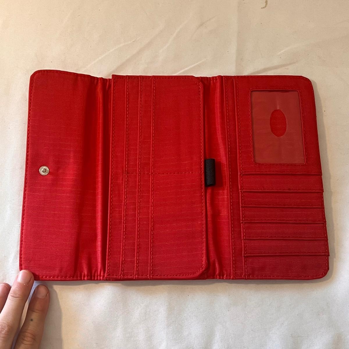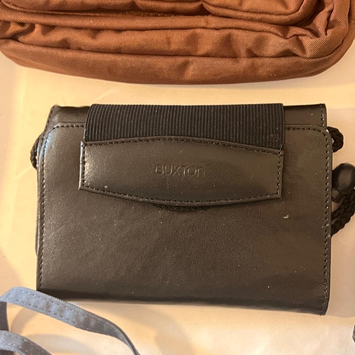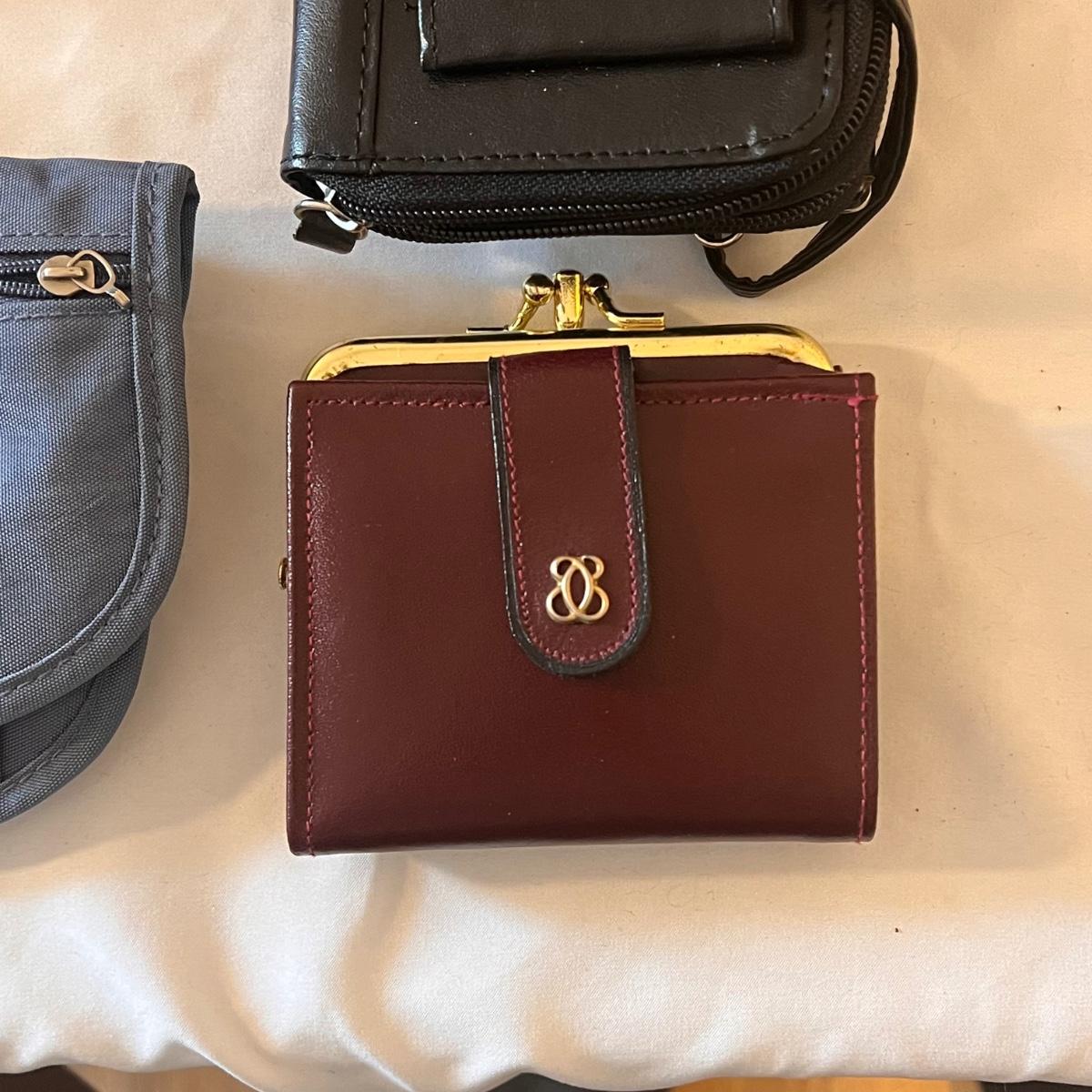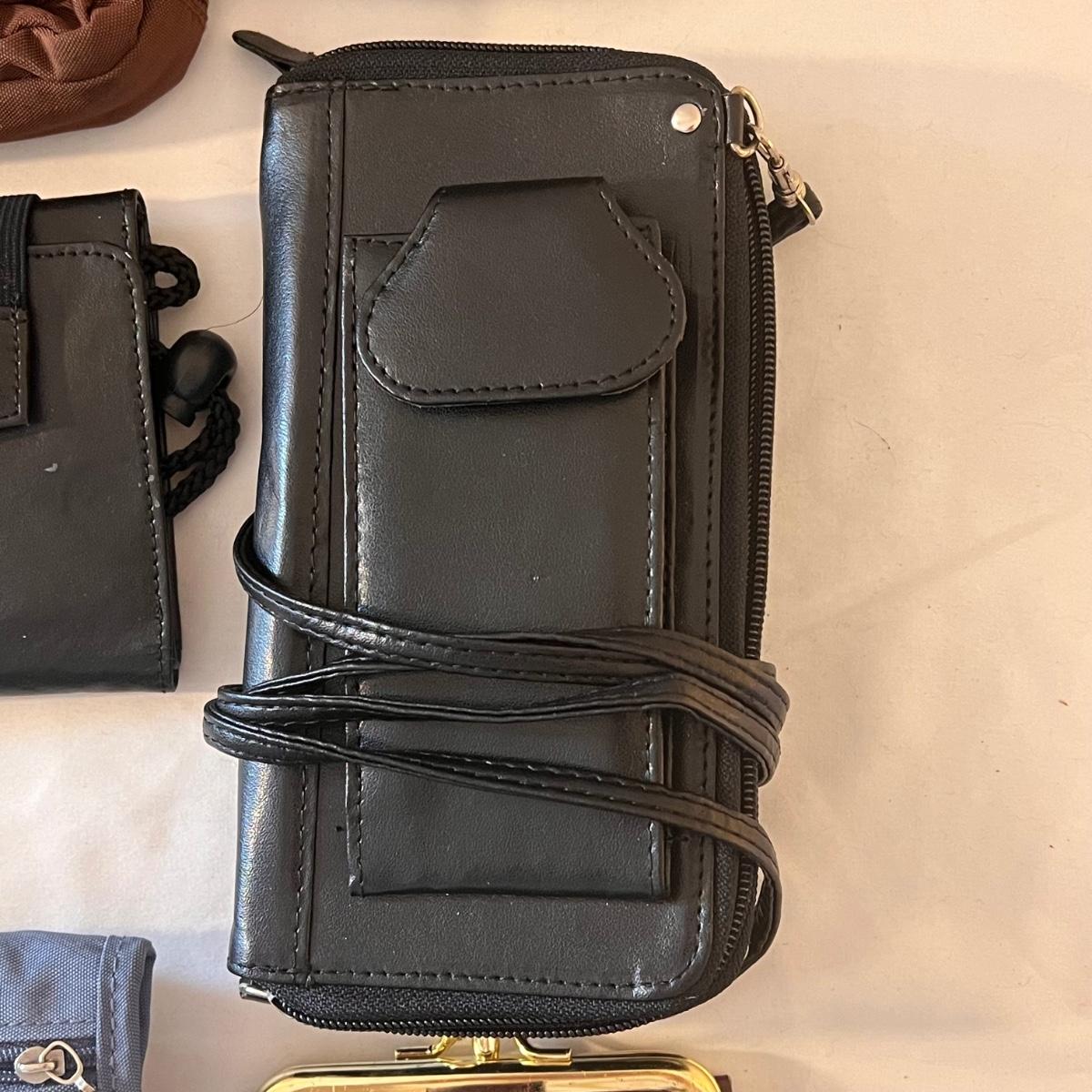This lot comes with around ten bags of various sizes. There are around four Baggallini branded bags, one Samsonite wallet, one Buxton clutch, one Ohio Bag Corp, and more. Taupe Baggallini bag measures approximately 9.5" x 8." Shipping available.