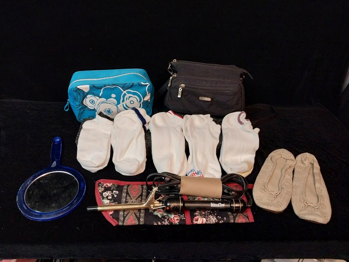 BAGGALLINI PURSE, ANKLE SOCKS, CURLING IRON AND MORE