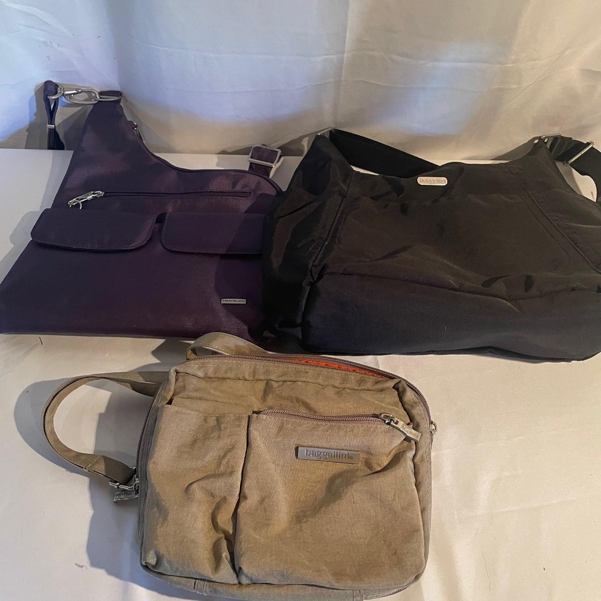 Three great purses here, two are Baggallini, the purple bag is Travelon and appears to be new. All three purses are in excellent condition.