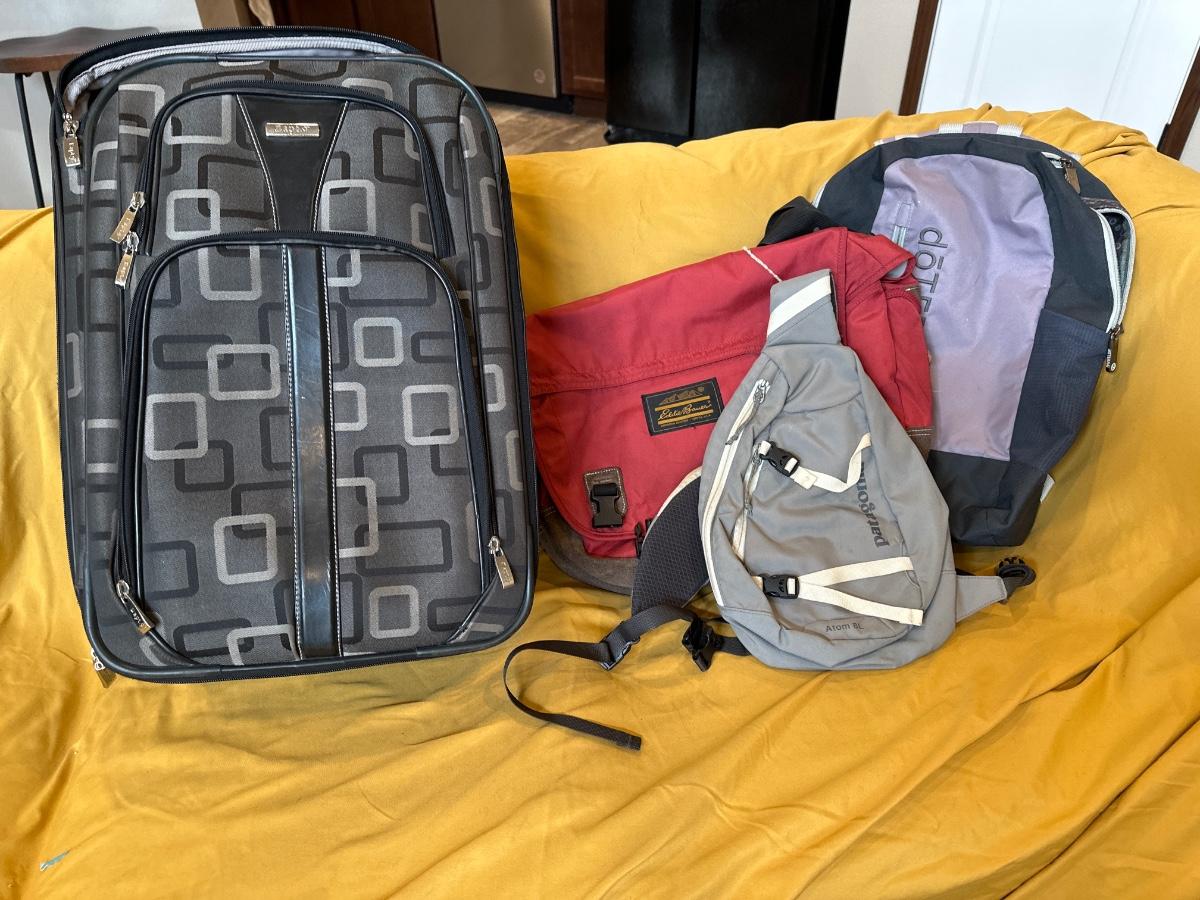 Suitcase, Messenger, bag, backpack, and Patagonia atom Messenger bag