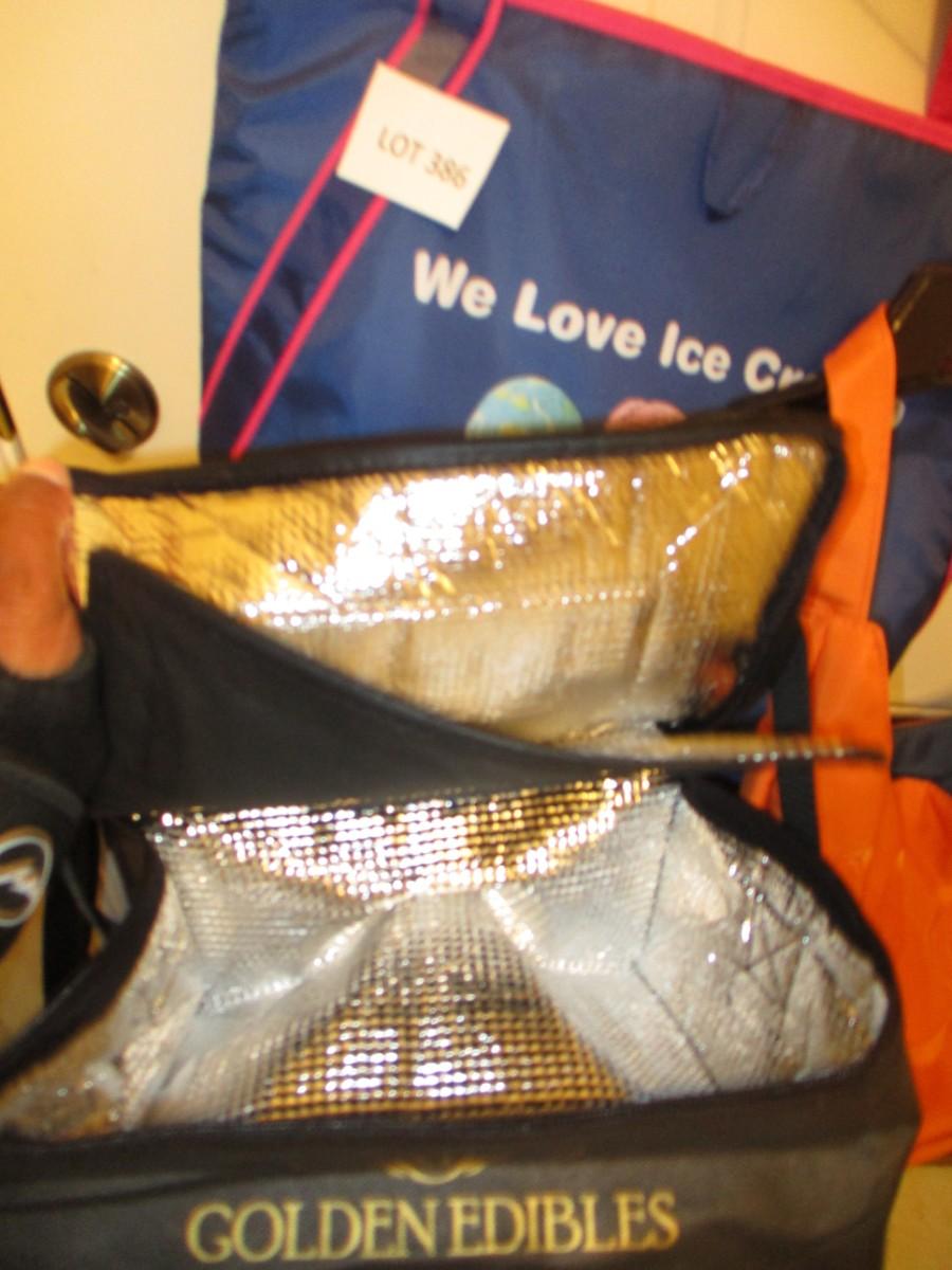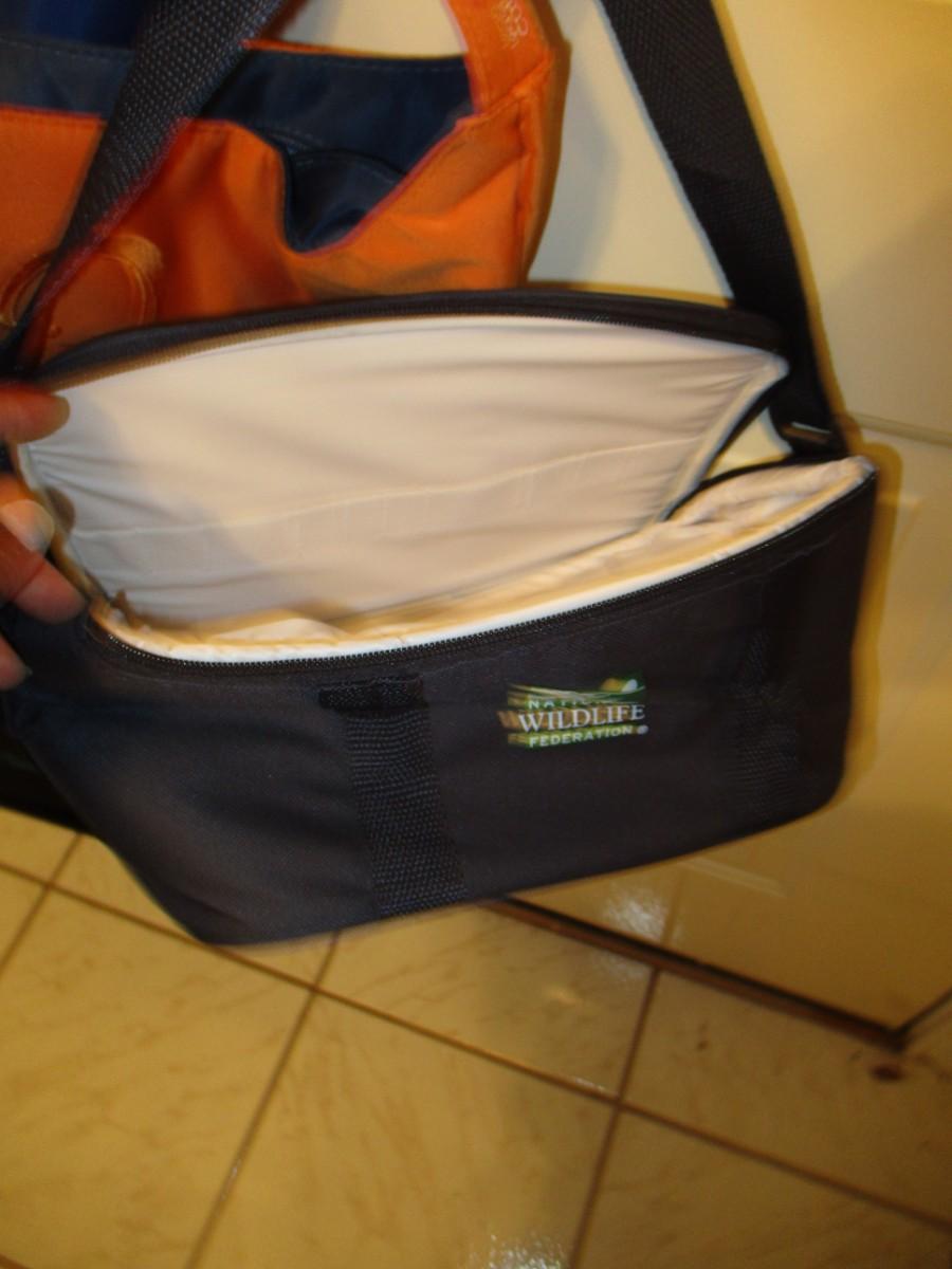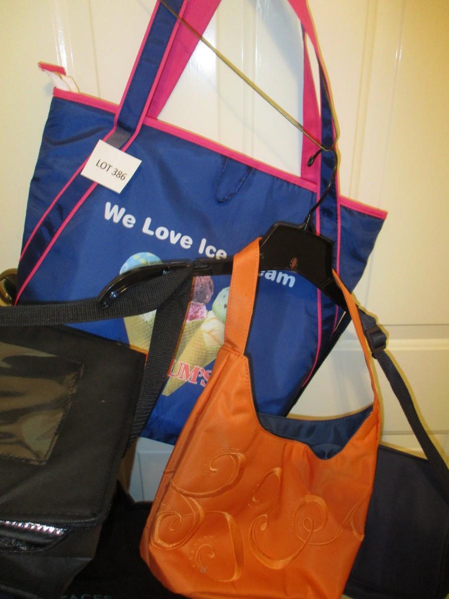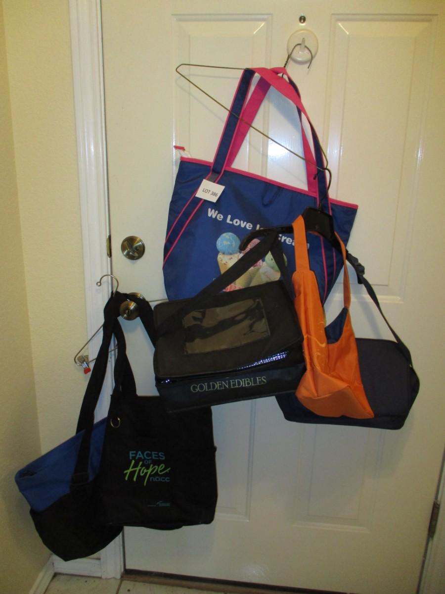 Lunch bags, book bags, orange purse