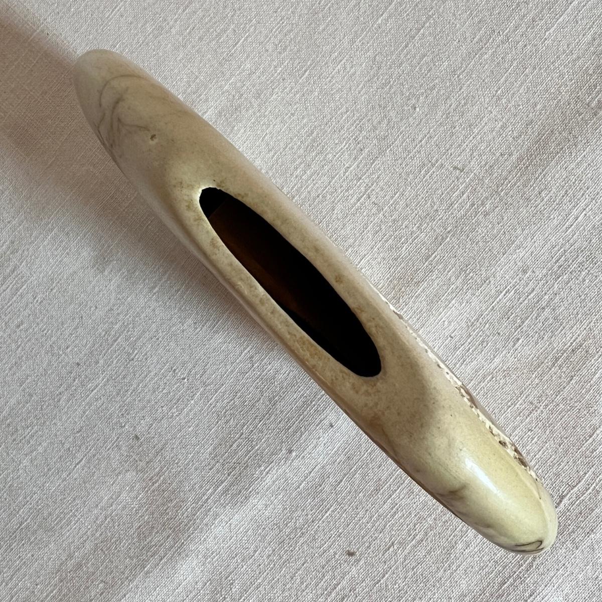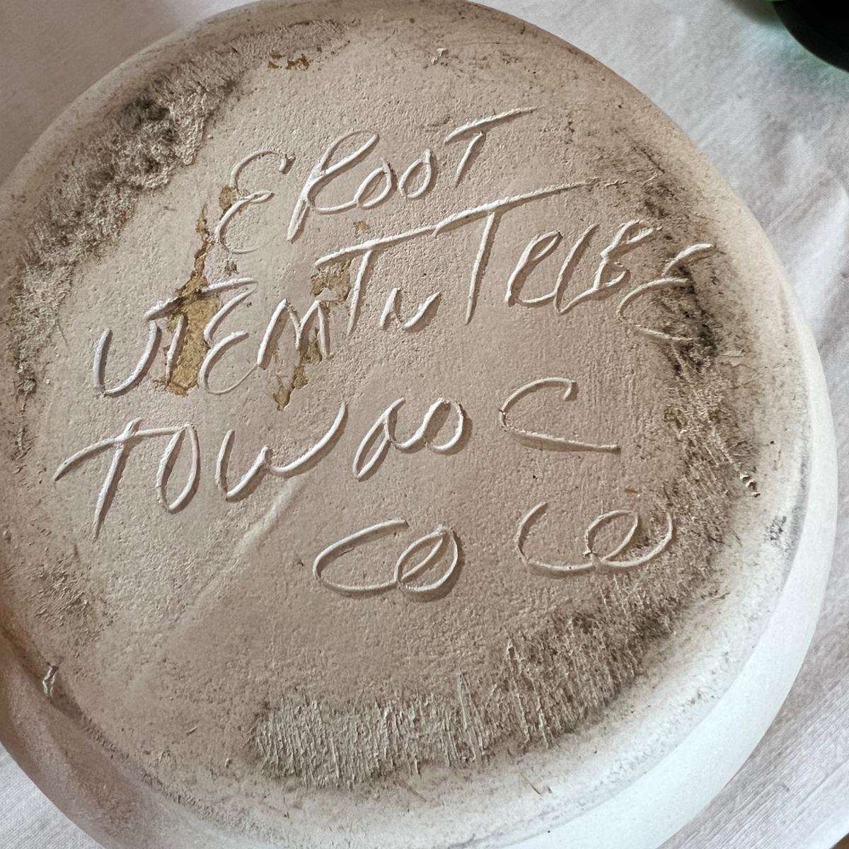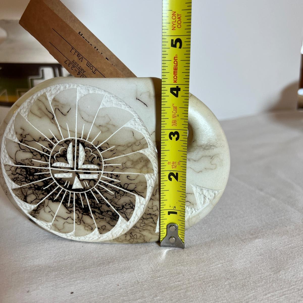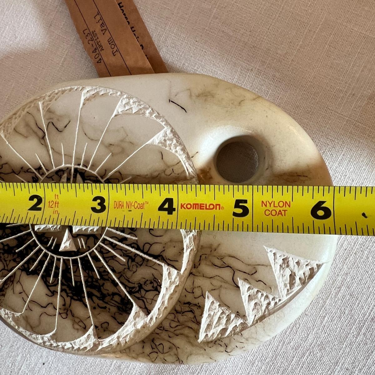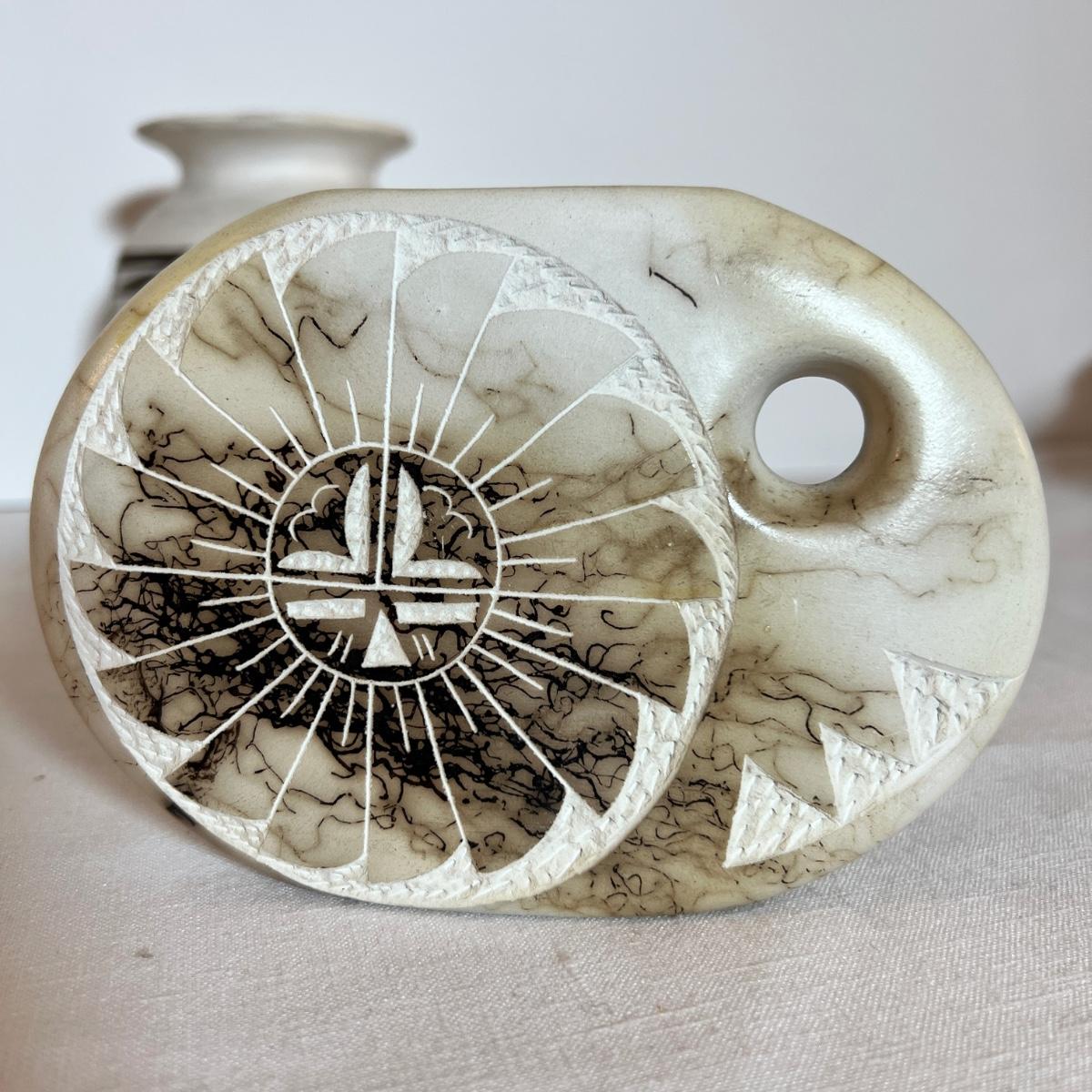 The taller piece is by the Ute Mountain Indian Tribe, signed on the bottom. The shorter piece is by Tom VAIL and comes with a certificate of authenticity. Vail is a Native American NAVAJO artist. The vase is a horse hair HAND CARVED sun art 2 sided pottery vase.