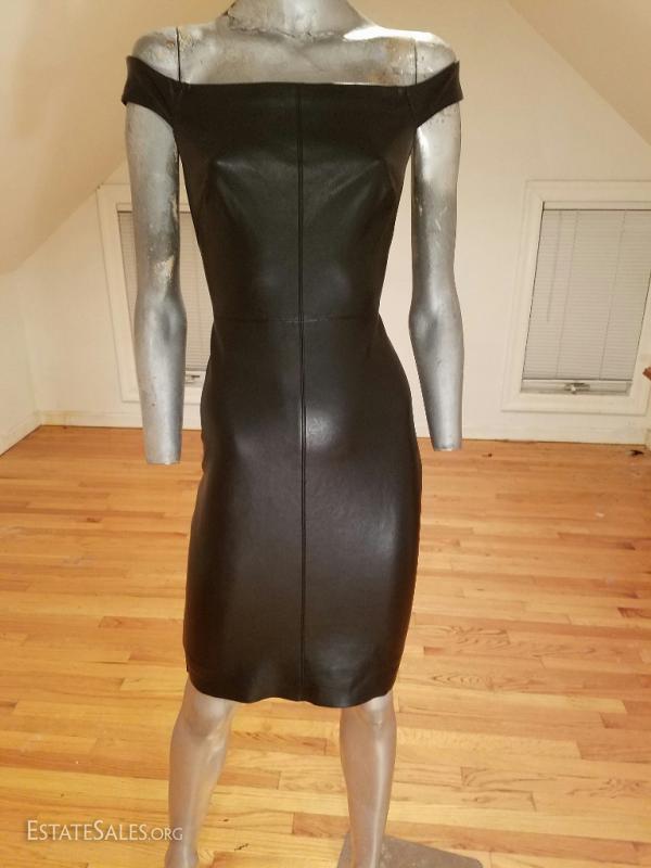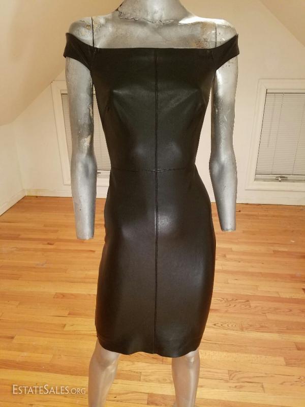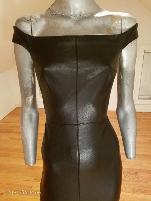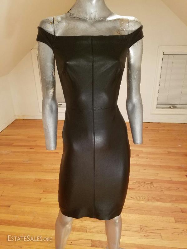 Beautiful body con mini dress liquid leather at front and jersey spandex at back