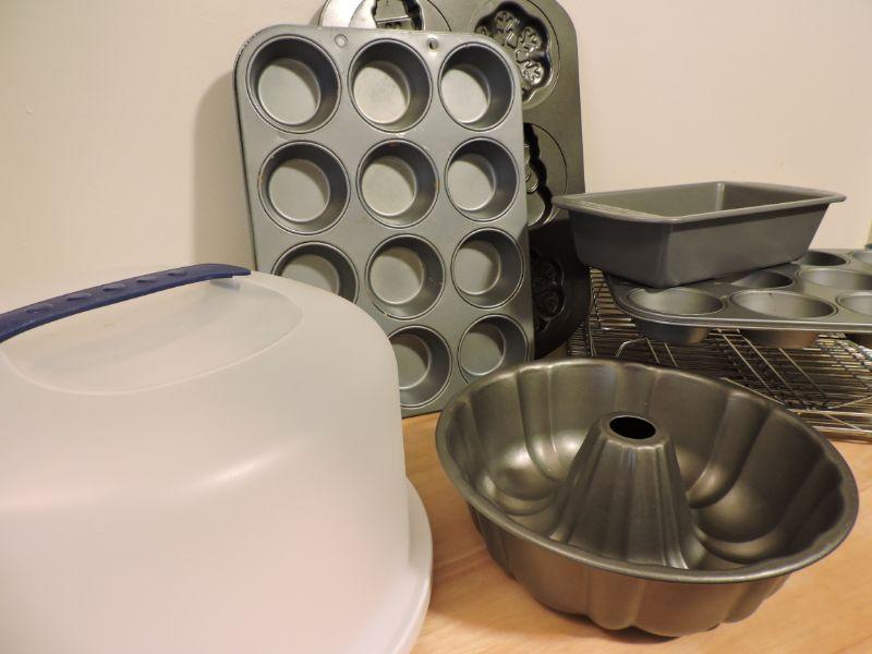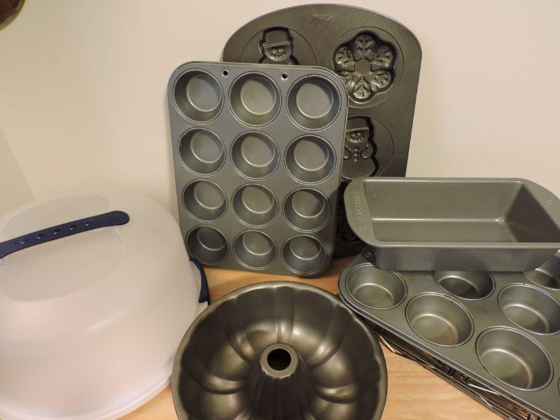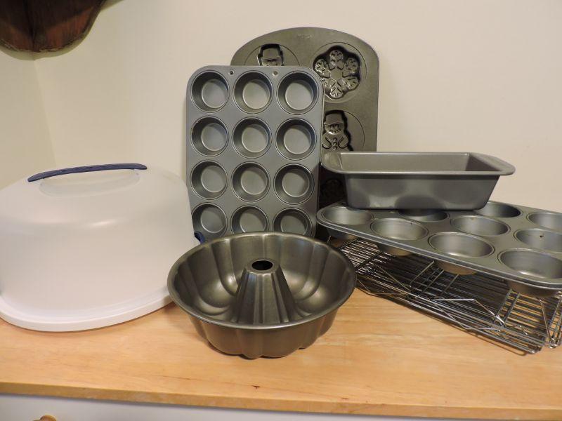 This set has all you need to start baking and sharing cupcakes and cakes! Cupcake tins, bundt pan, loaf pan, cooling racks, cake carrier, and a cupcake carrier! **Please read Terms and Conditions before placing a bid. Pick up is Thursday, August 15, 2019 from 4pm to 7pm or Sunday, August 18 from 11am-2pm in Mullica Hill. All sales are final. All sales are as is, where is. Please review all photos. Any props included in photos are not included in listing. All measurements are approximate.