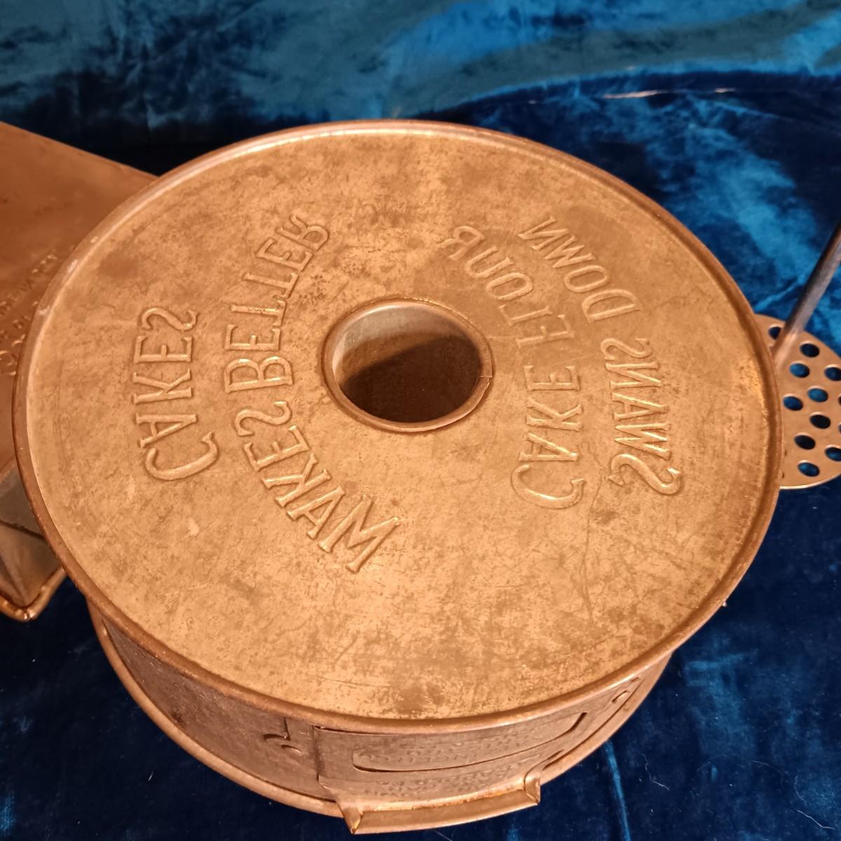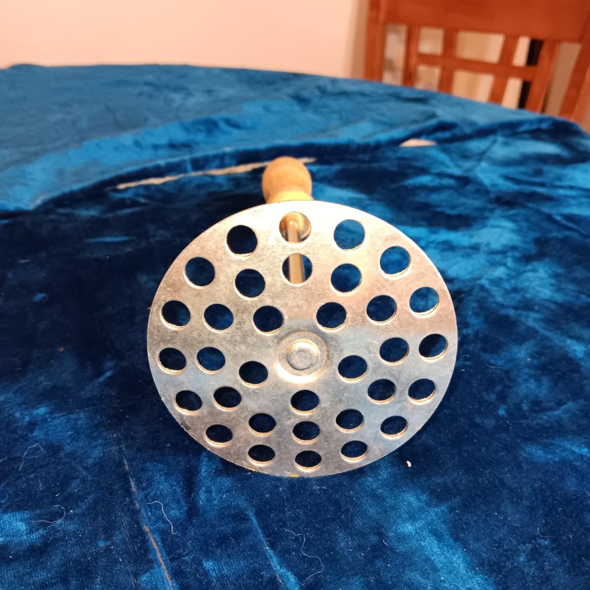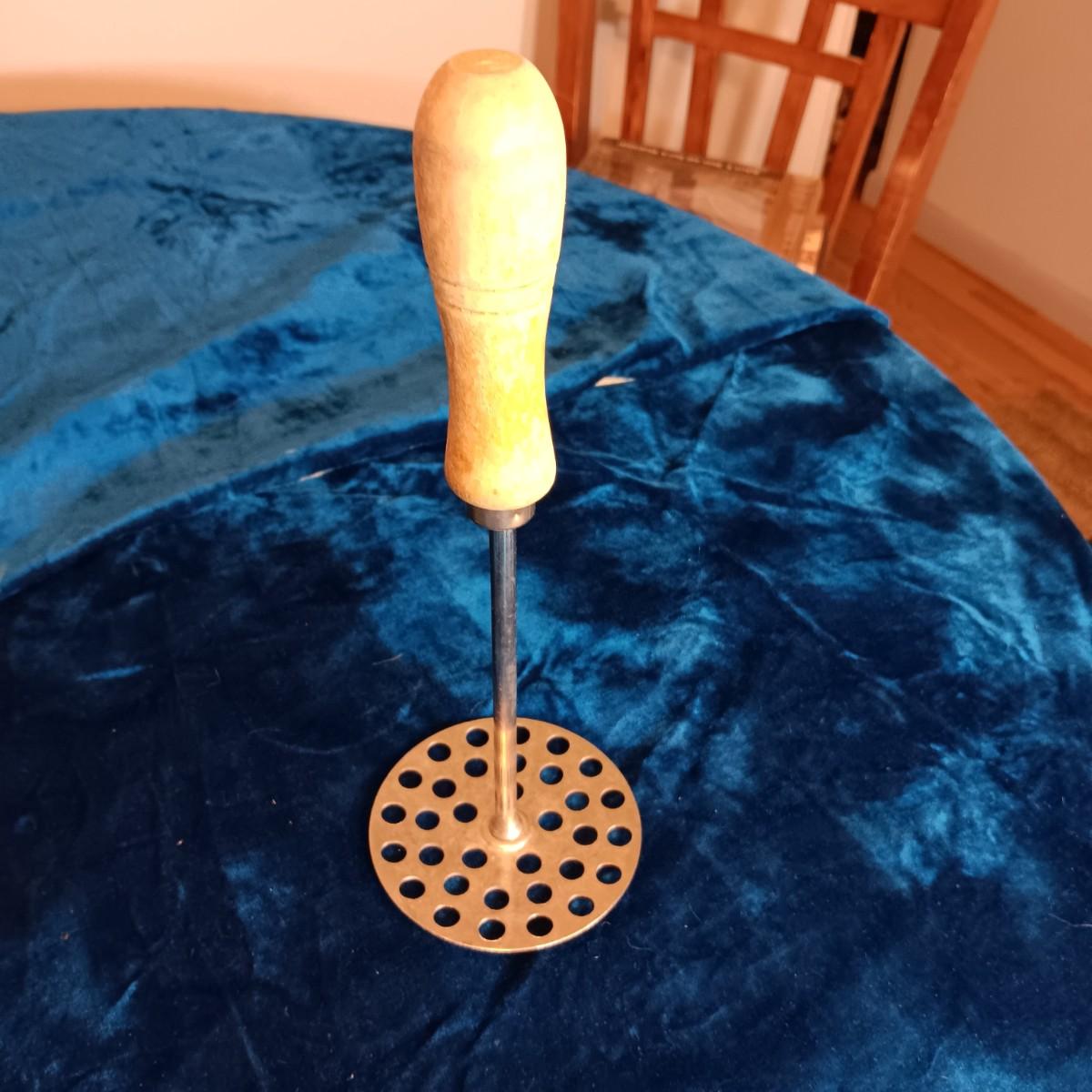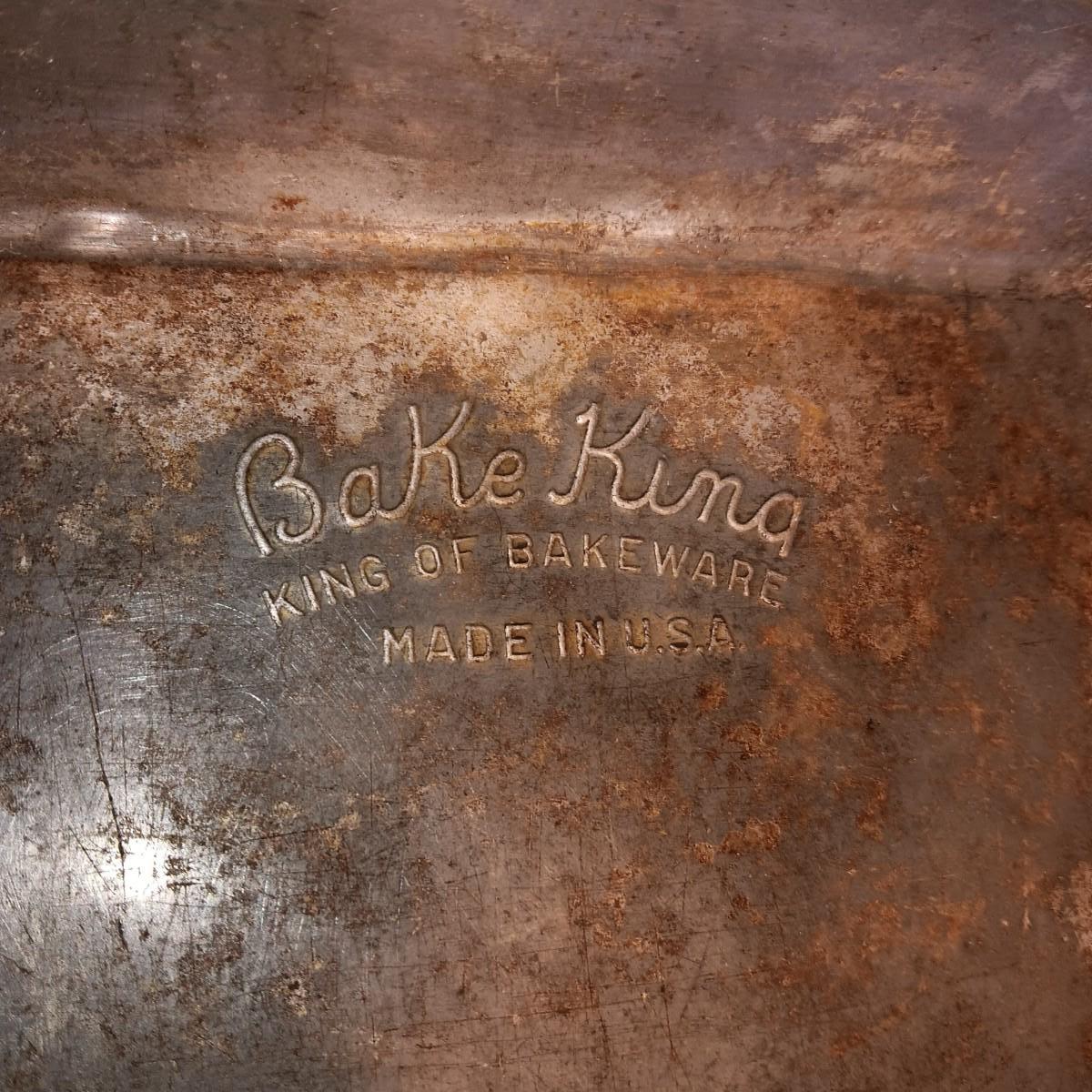 BAKE KING SQUARE PAN, SWANS DOWN CAKE PAN AND A MASHER W/WOODEN HANDLE