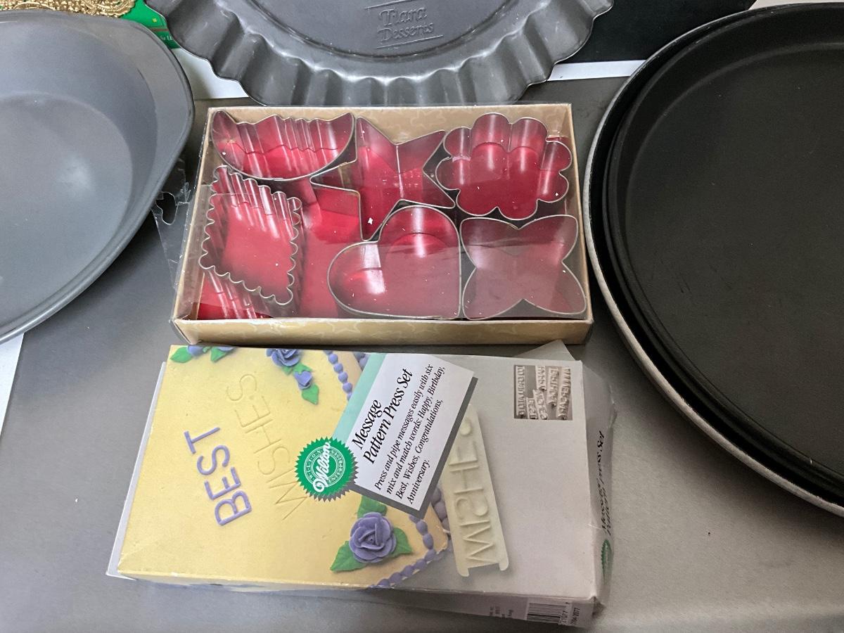 Bake ware - ikea cookie sheet, cookie cutters, pizza platters, others
