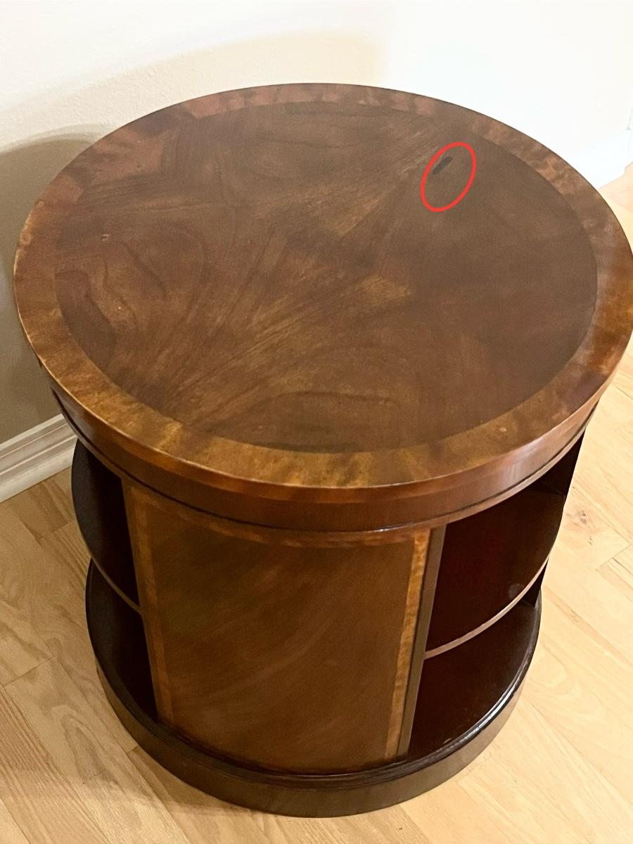 25” H x 24” Round ~ Top appears to have a burn (see photo)