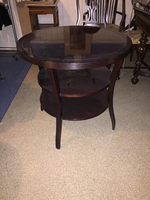 3 tiered round table by Baker. 30" diameter, 29" tall.