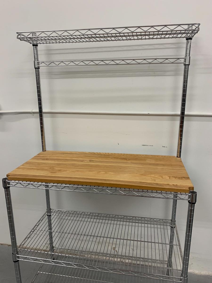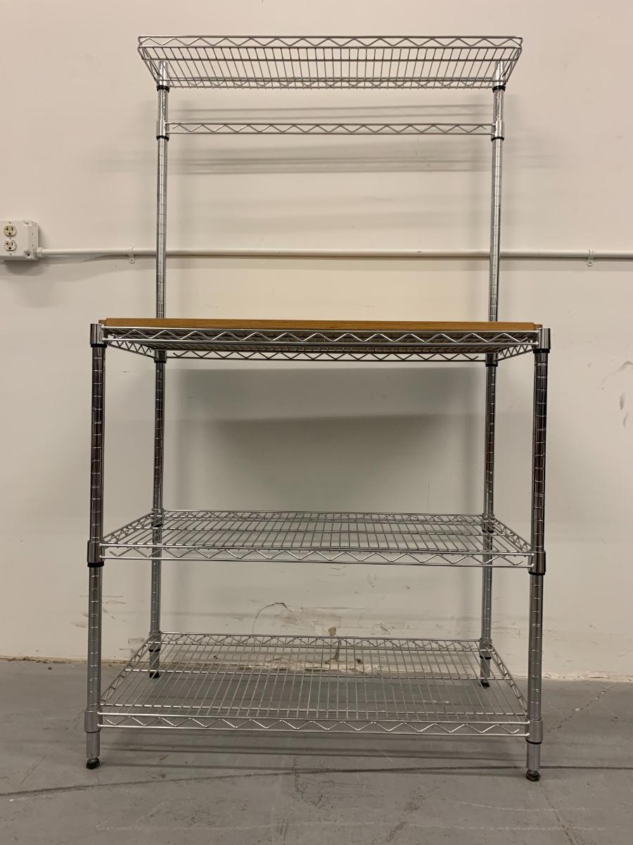 Metal Bakers Rack with wood. (64” H x 35” L x 18.5” D) Great condition - perfect for any kitchen!
