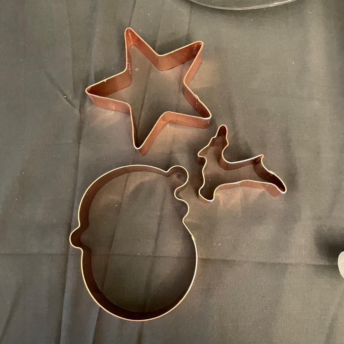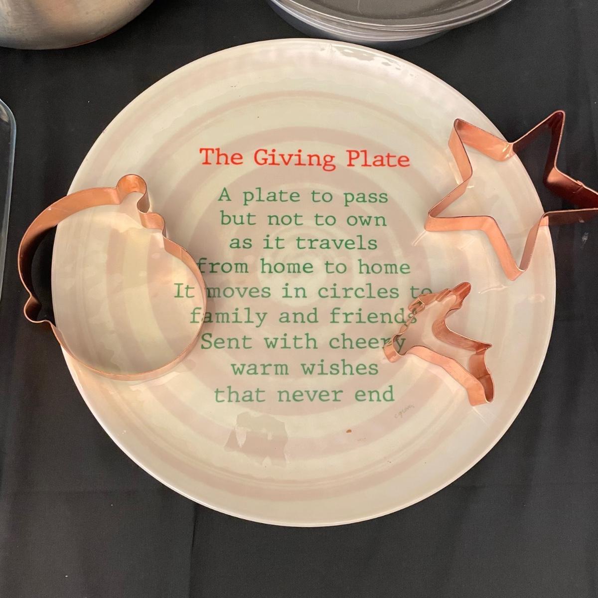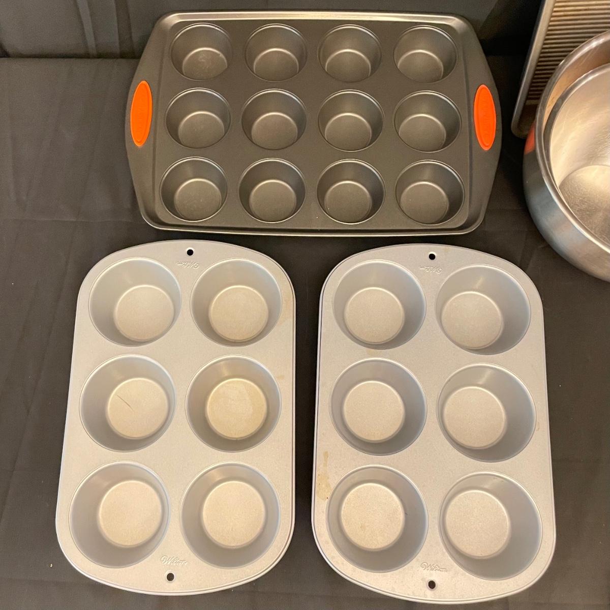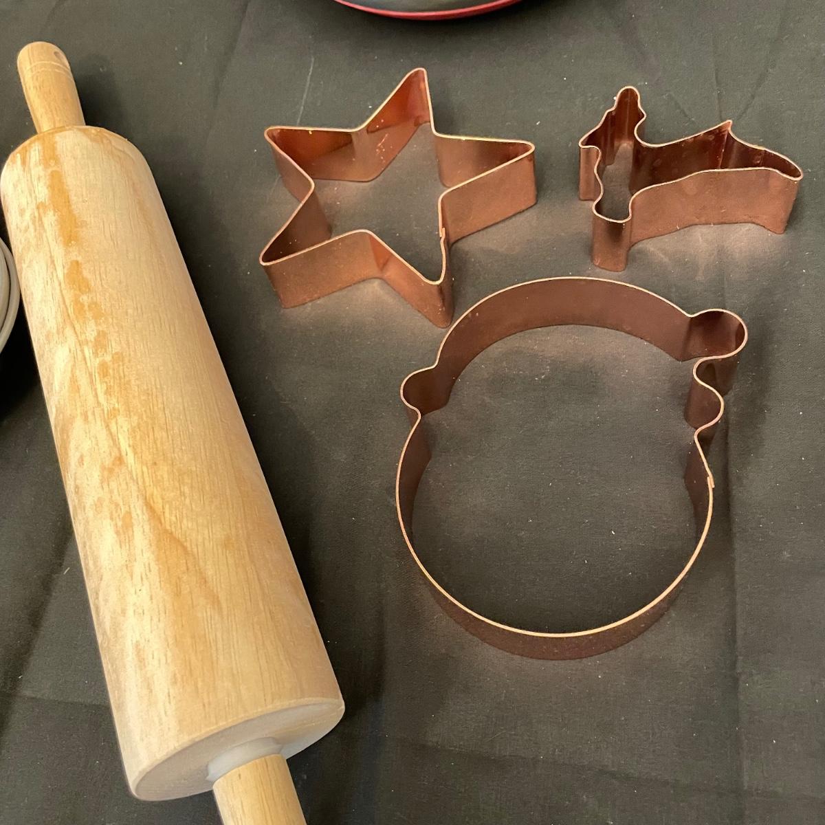 A useful and decorative lot for any baker. Lot contains many pans including cake pans, pie plates, muffin and cupcake tins. Two nesting mixing bowls with non-slip silicone bottoms. A quality wooden rolling pin and three large copper colored cookie cutters. Displays include an 8”H heavy glass plate topper and a 14”D melamine-like “Giving Plate”. Local pick up only.