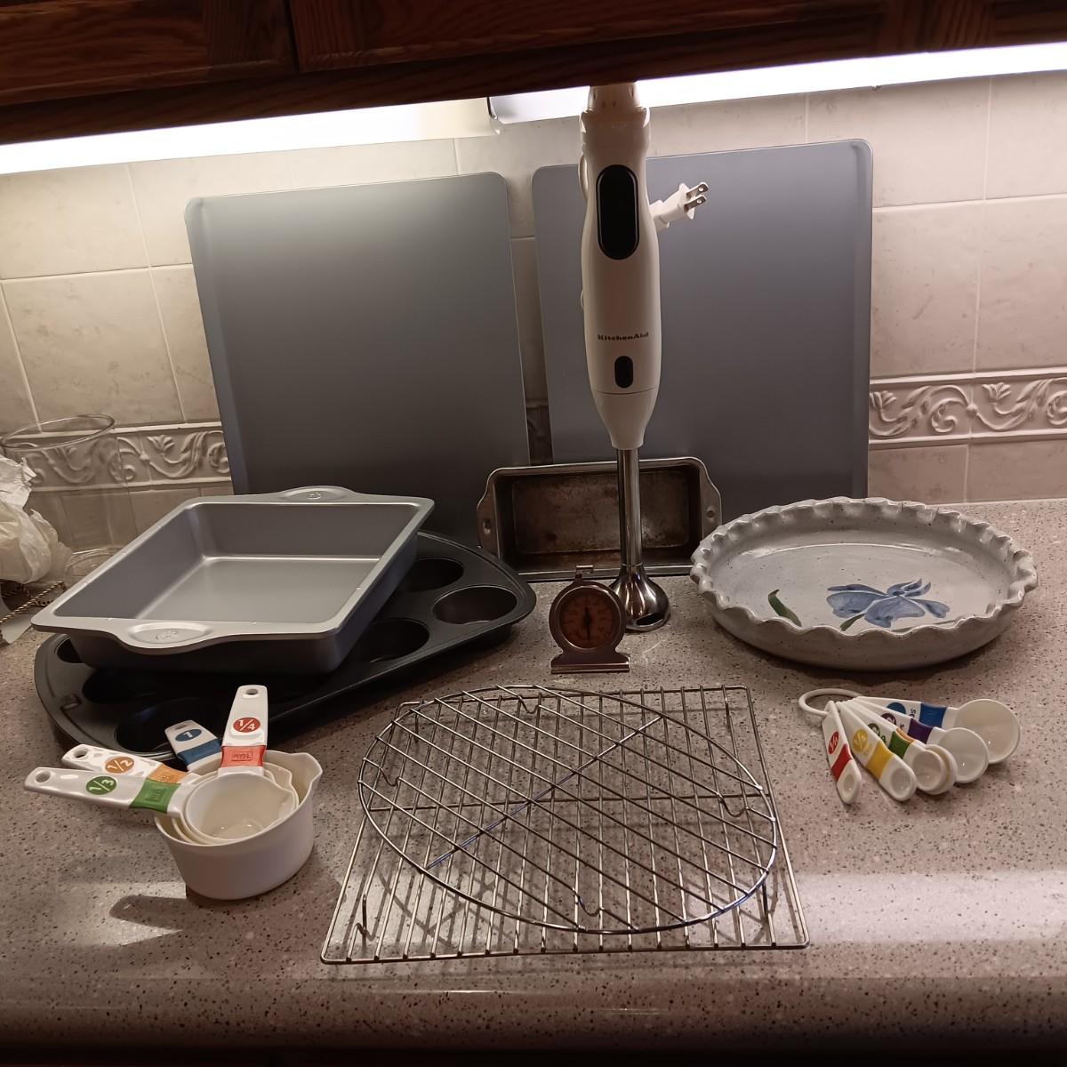 BAKEWARE AND A KITCHENAID HAND MIXER