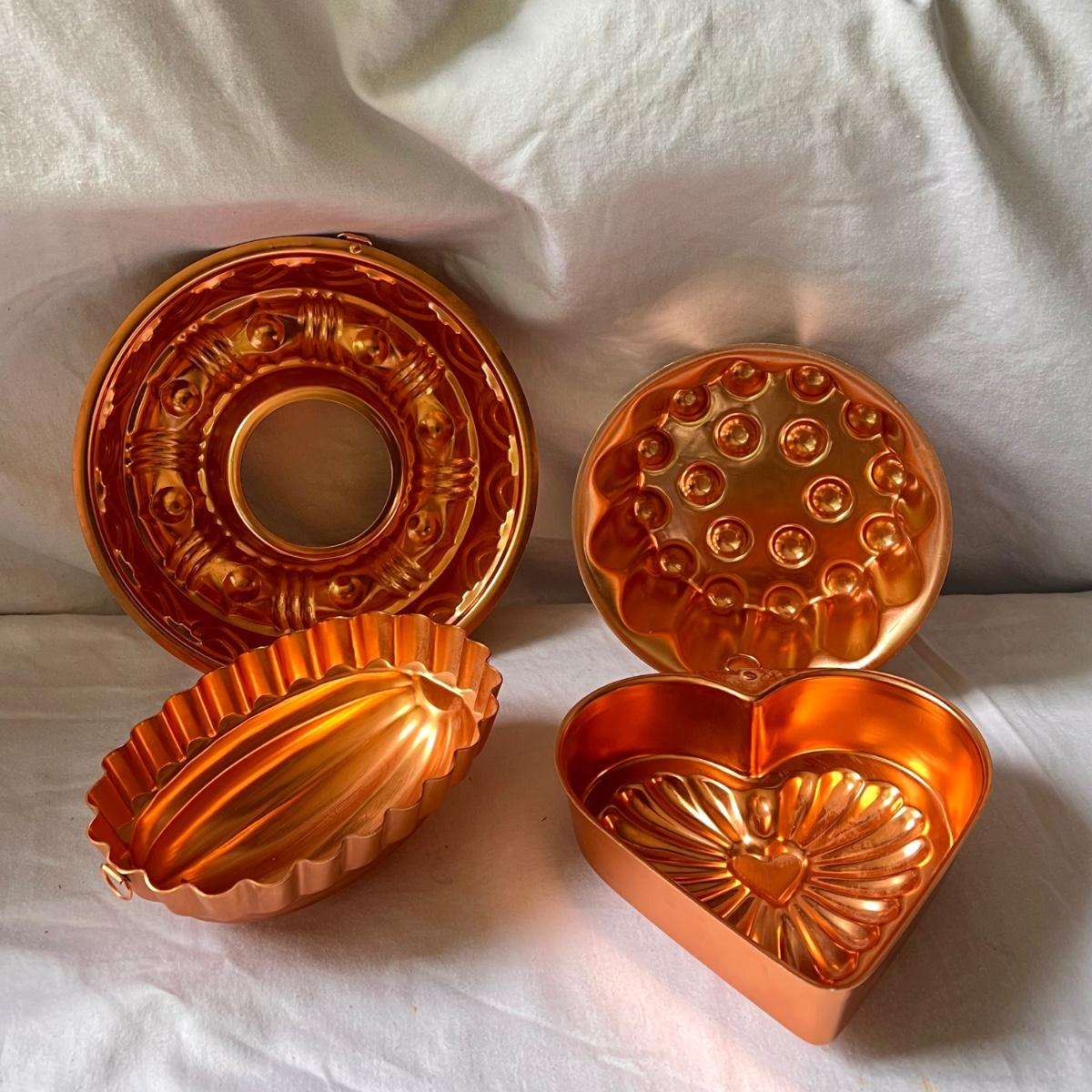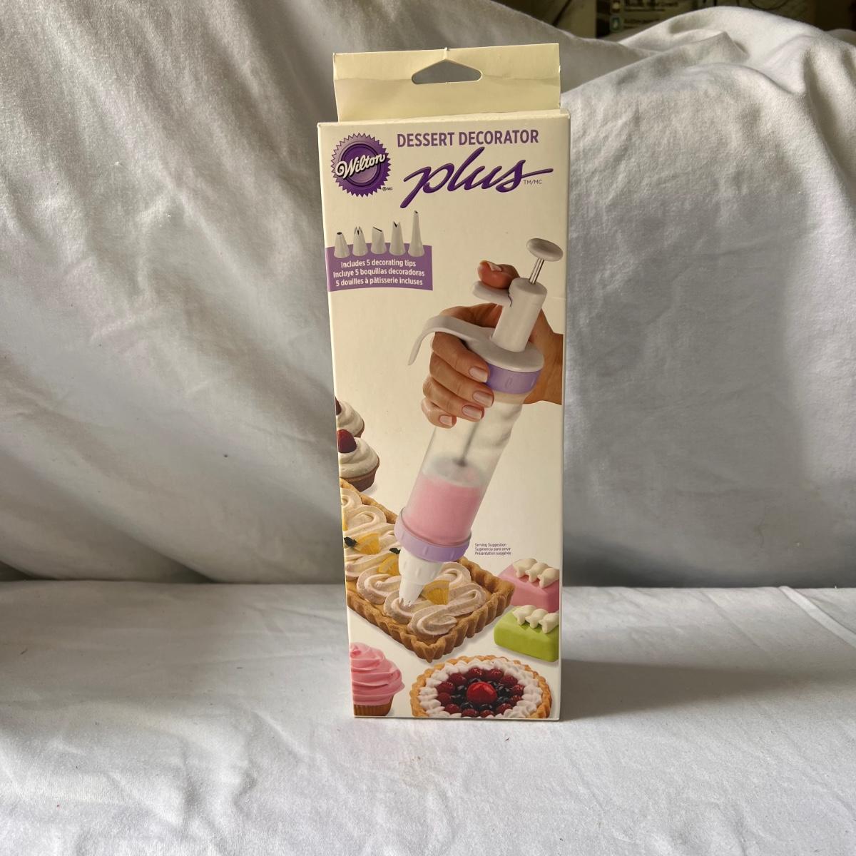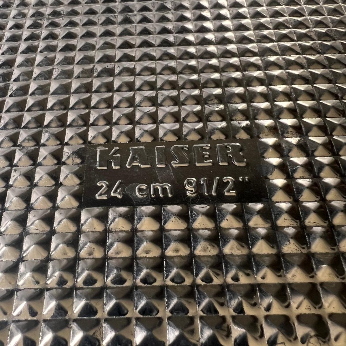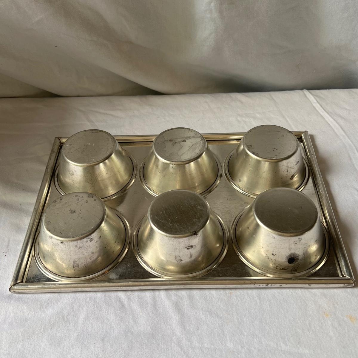 This lot includes seven cake trays in various sizes, four small spatulas and scrapers, one large muffin pan, eight small dessert dishes, one glass footed dessert dome, one Wilton’s dessert decorator, and one mini scone pan. The large muffin pan measures 13.5” x 9”H. The small glass dessert dishes individually measure 3.75”D x 2.25”H. One of the cake pans is branded with Kaiser on the bottom. Shipping available.