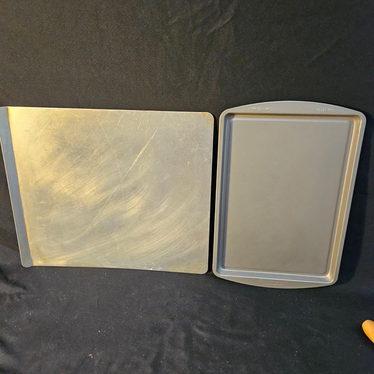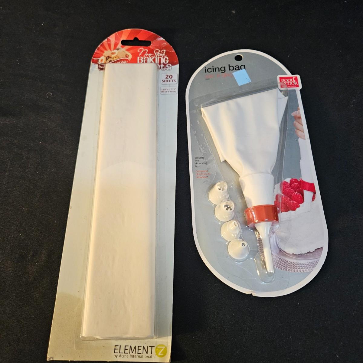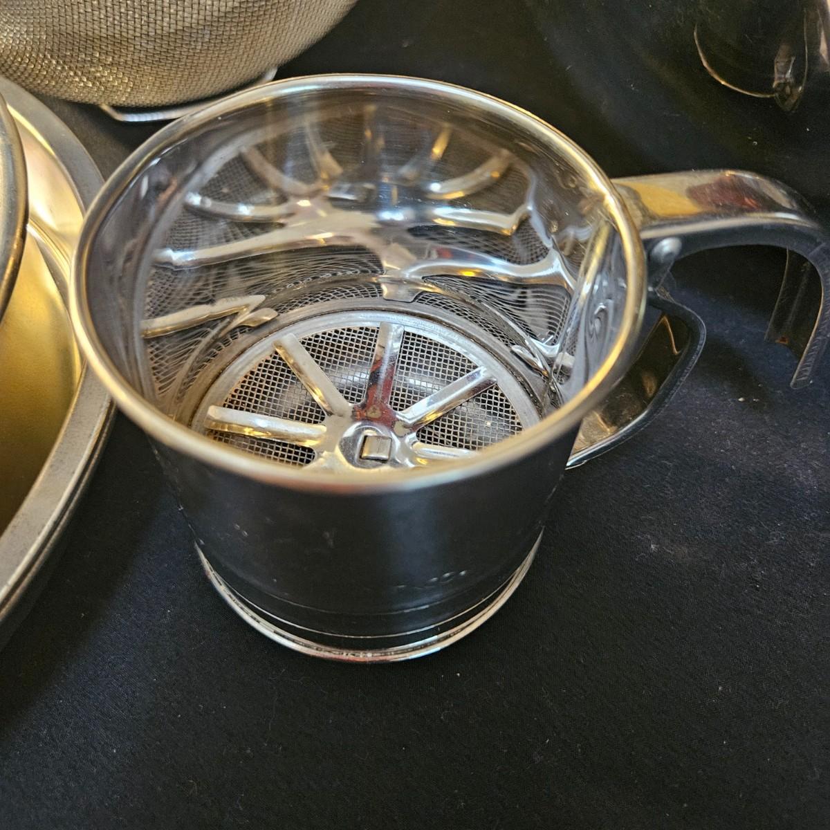 An assortment of baking essentials that includes baking pans, mixing bowls, rolling pins, muffin pans, strainers and more. See attached pictures for complete inventory. Local pickup only.