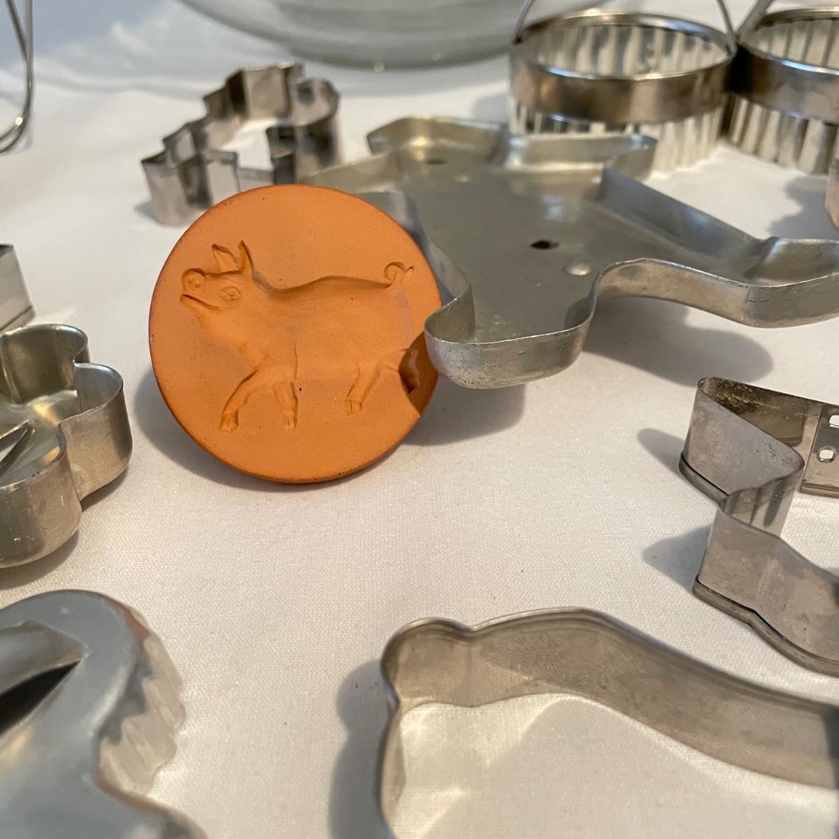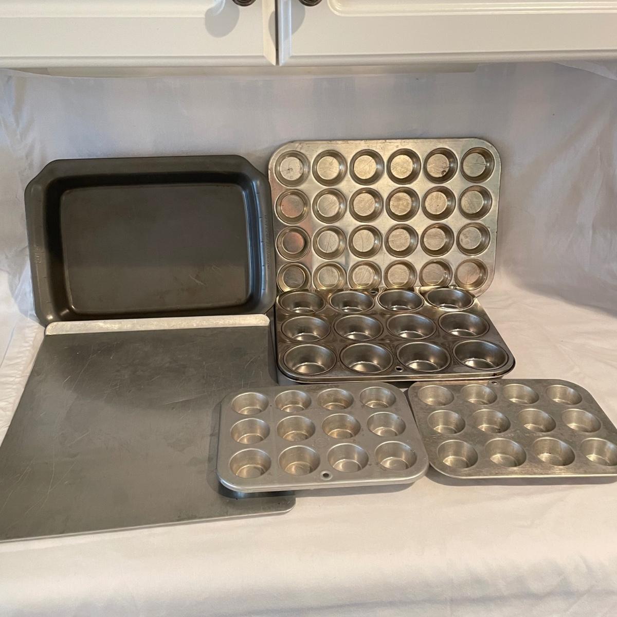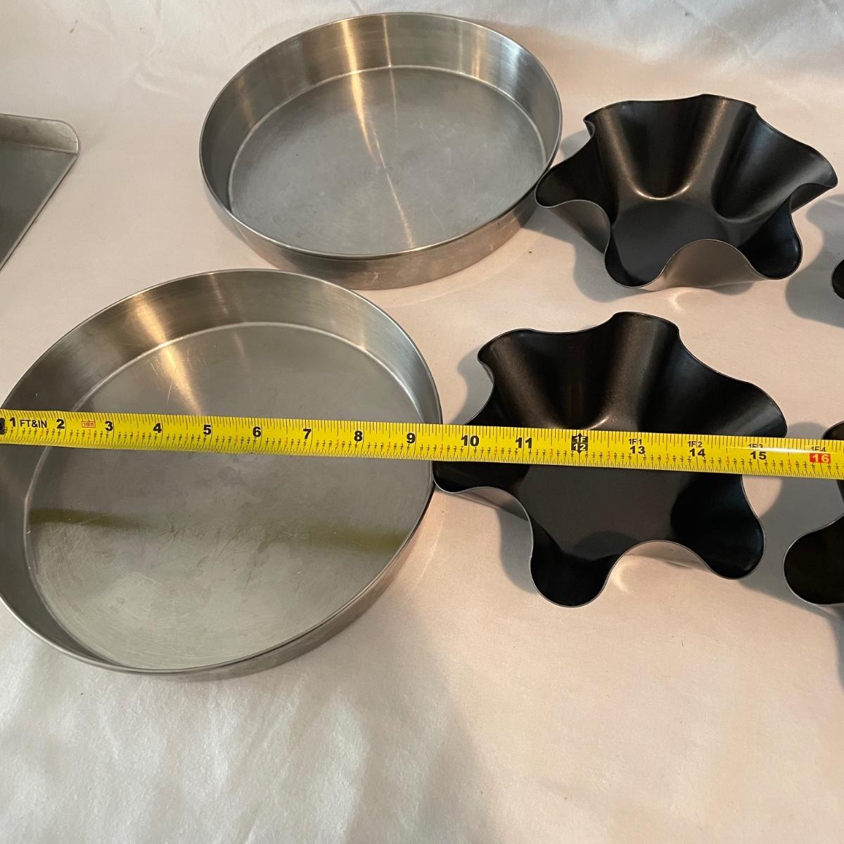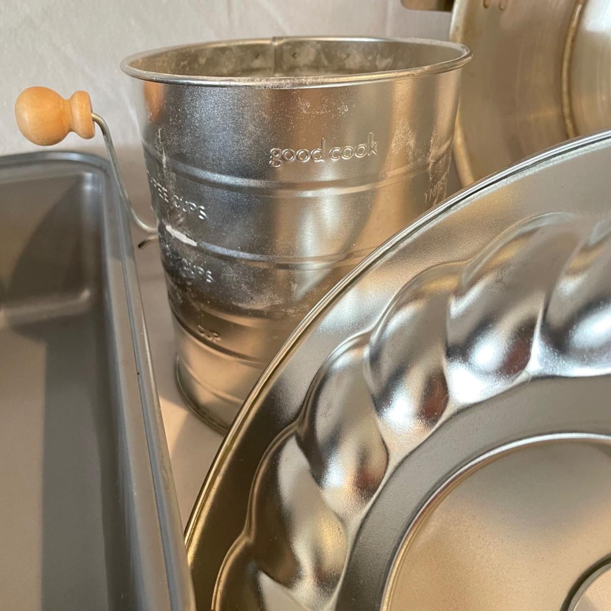 A well rounded baking lot! Start with a Mastrad scale and Goodcook sifter, use the KitchenAid hand mixer (powered on when plugged in) and nesting bowls, roll it out with two wooden rolling pins and design your cookies with a variety of cutters. The Roul ’Pat mat measures 23” x 15”. Lot also includes multiple forms and pans to bake away with. See images for total lot inventory. Local pick up only.