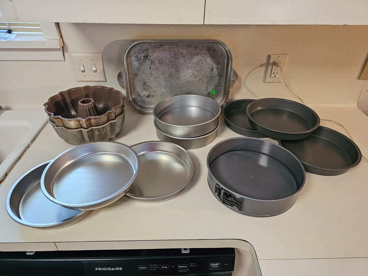 Bundt cake pans (vintage, heavy) spring form pan, cake pans, heavy vintage roast pan