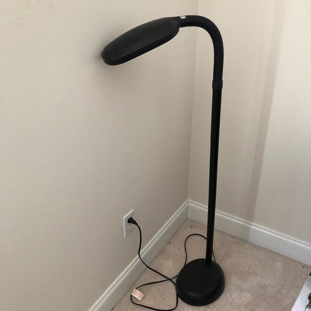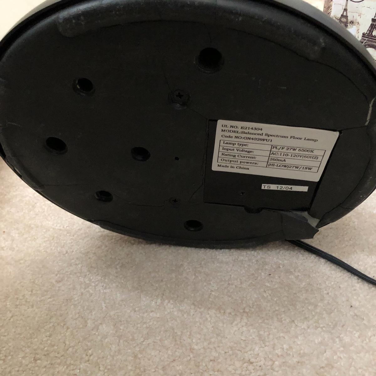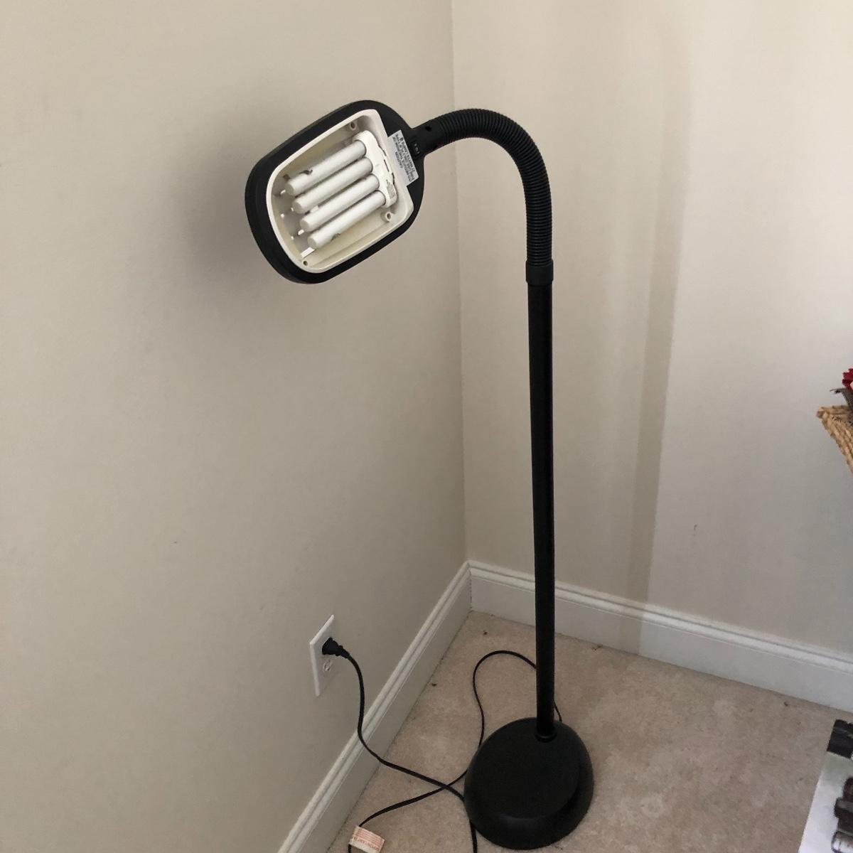 Lot includes Balanced Spectrum floor lamp with adjustable head. Lamp base measures 9” x 11” and lamp is 60” tall. Lamp worked when tested.