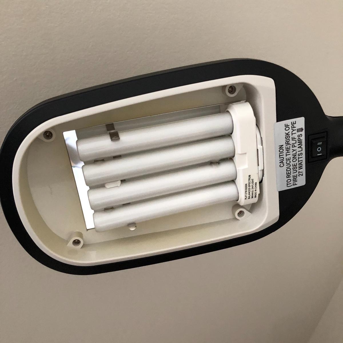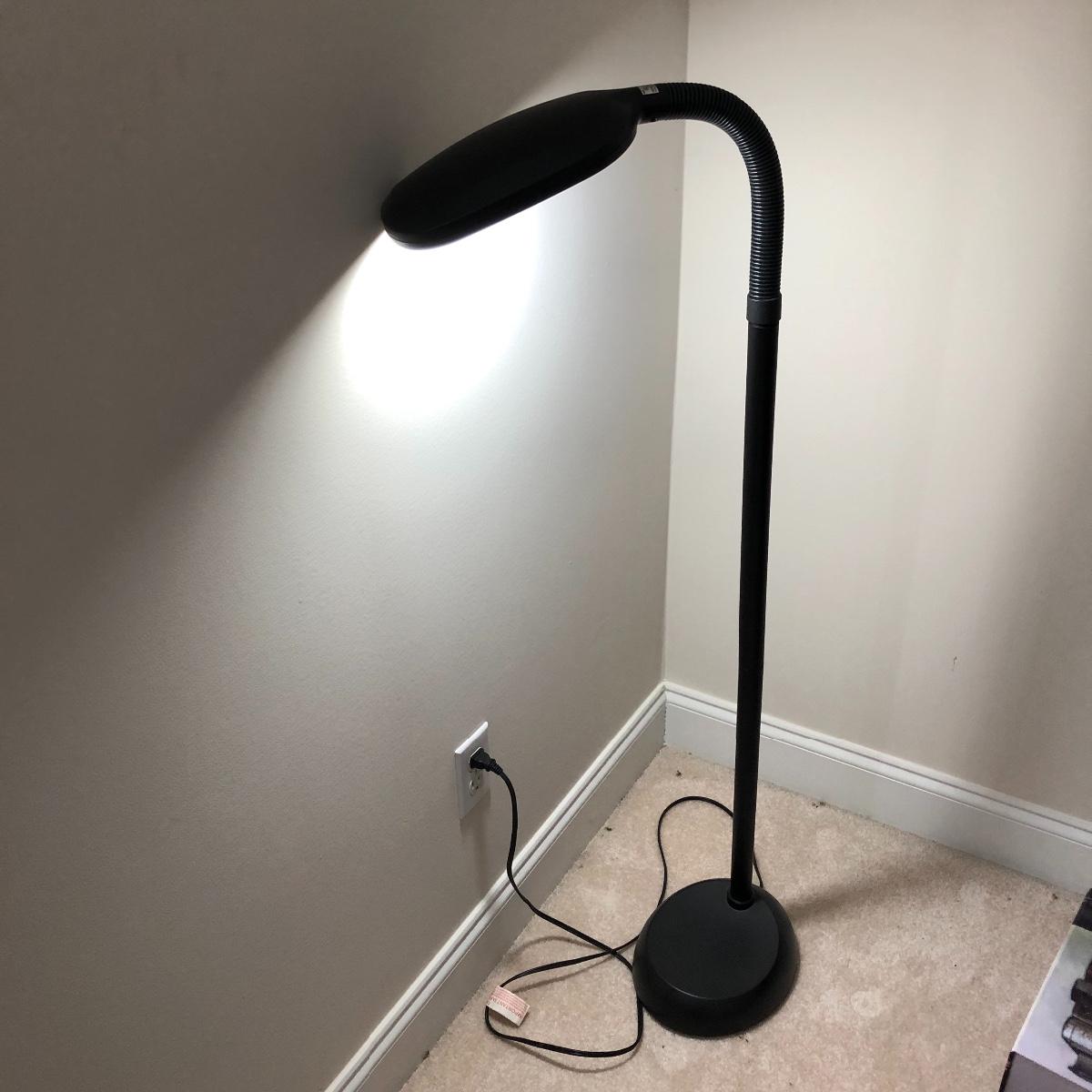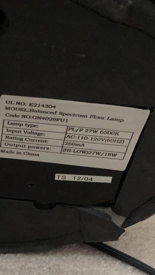 Lot includes Balanced Spectrum floor lamp with adjustable head. Lamp base measures 9” x 11” and lamp is 60” tall. Lamp worked when tested.