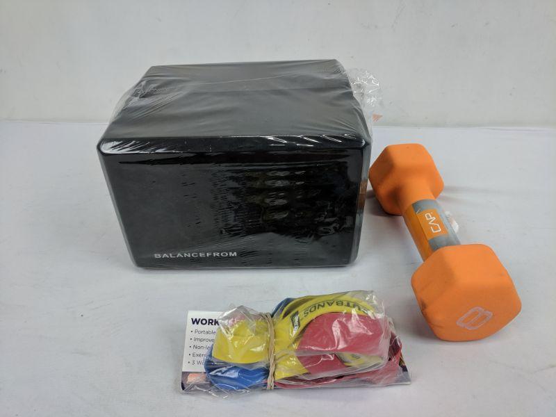 Balancefrom Yoga Blocks Set of 2, Neoprene Dumbbell 8 Lbs, Workout Bands - New