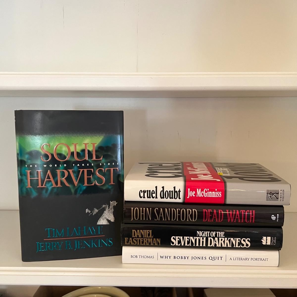 60 plus books which are approximately 2/3 hard backs. Great authors includes Follett, Michener and more with some first editions included. See photos for copyright pages and full inventory.